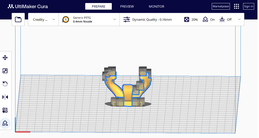 20% infill, 0.12 layer height, 0.4 nozzle, 0.4 line width.