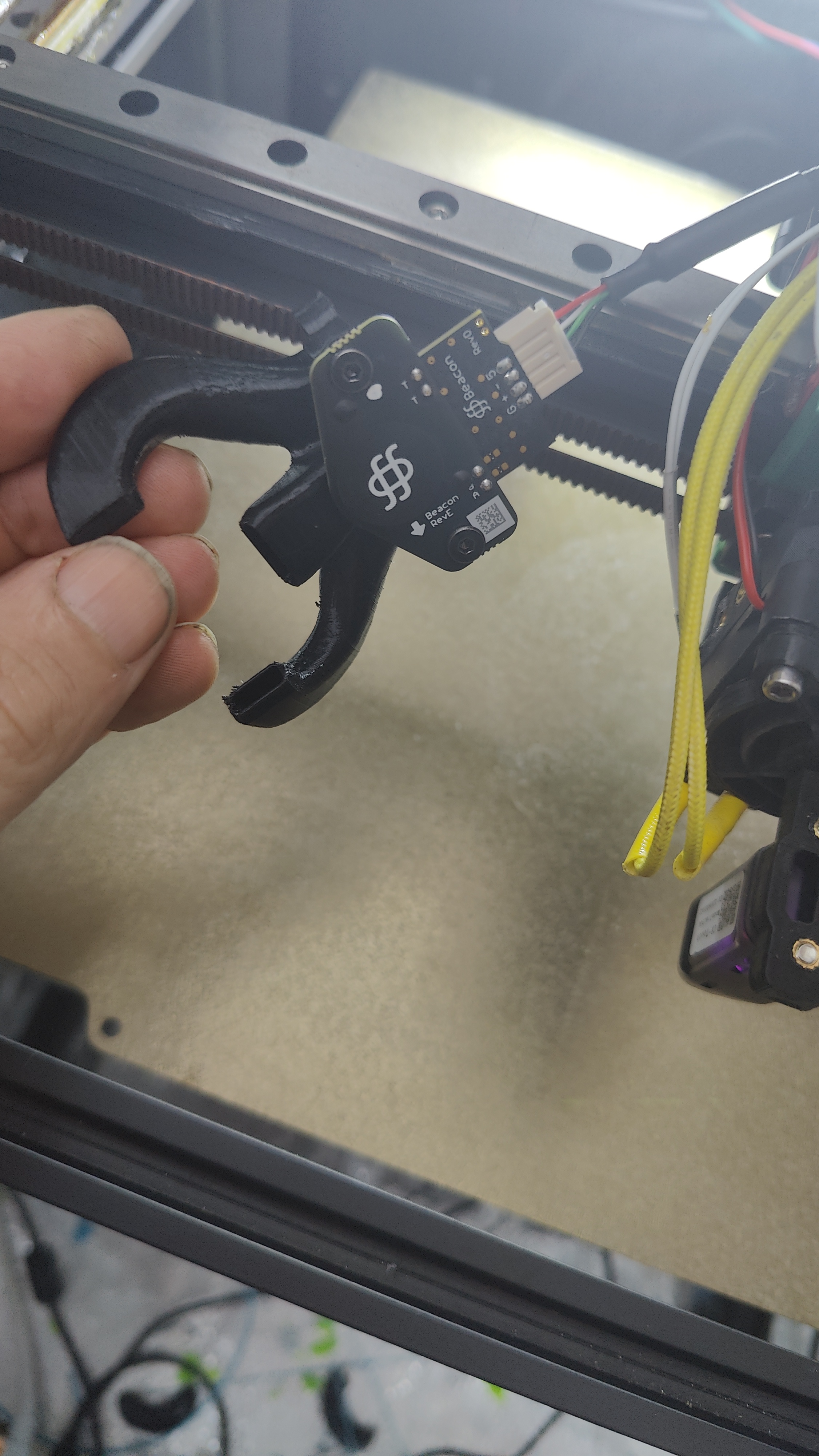 Cần cái mount để gắn beacon probe vô cái EVA2.4. Thêm cái block để gắn vô, offset X=0 Y=-35. Nằm cao hơn đầu phun khoảng 2.5mm. In 20% infill, 0.12 layer height, 0.4 nozzle, 0.4 line width. Bật support nhưng phải block hết nha.
