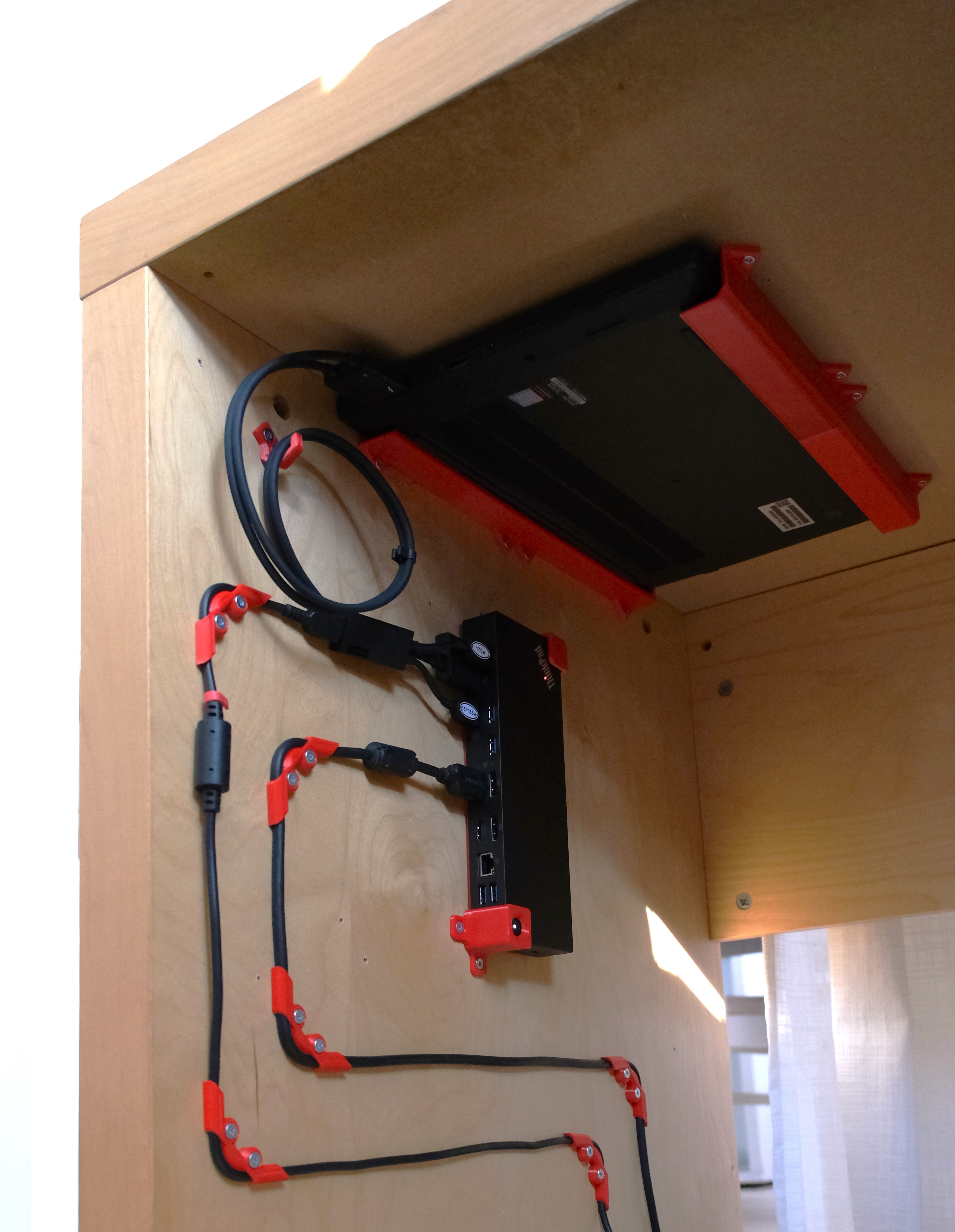 Đây là một giải pháp để giải phóng không gian bàn làm việc của bạn khỏi laptop, đó là đế cắm và dây cáp.