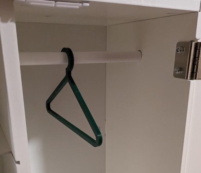 Một chiếc móc treo quần áo tí hon, được thiết kế riêng cho quần áo búp bê, giúp sắp xếp gọn gàng tủ đồ của bé.
