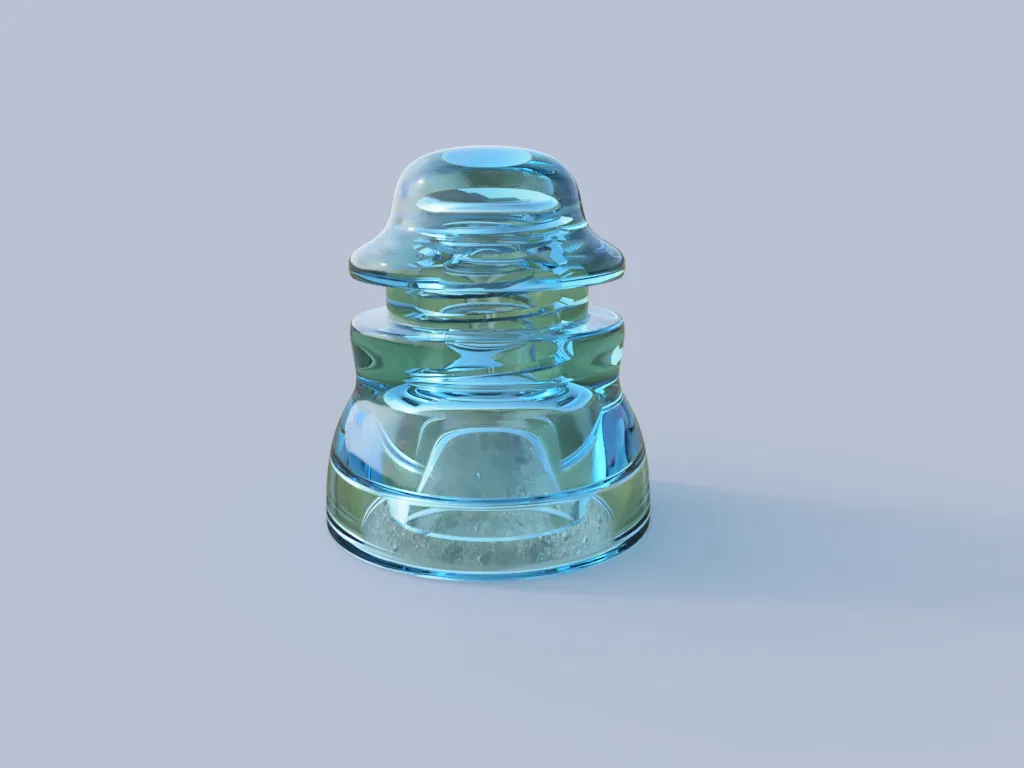 Vật cách điện thủy tinh gắn trên cột cổ điển, được tái tạo một cách tỉ mỉ. Mô hình này là một bản sao chính xác của vật cách điện thủy tinh truyền thống, hoàn hảo cho các dự án mô phỏng hoặc trưng bày về kỹ thuật điện.