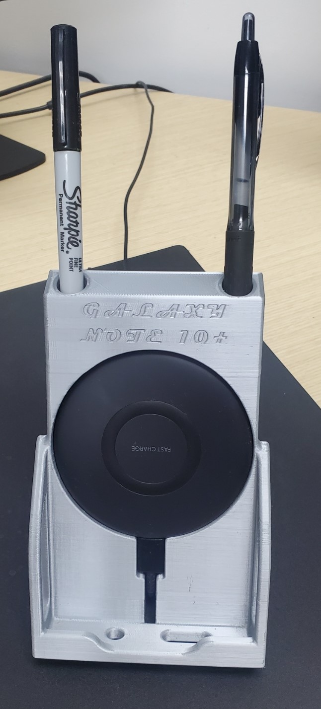 Giá đỡ sạc cho Note 10/10+/20 Ultra có chỗ cắm bút. Dành cho anh em nào vẫn còn xài Note 10+ hoặc Note 20 Ultra nha! Hỗ trợ sạc không dây Samsung EP-P1100, giữ điện thoại ở góc 30 độ và có khe cắm dây sạc tiện lợi. Có lỗ thoát âm và giữ được cả ốp lưng OtterBox.