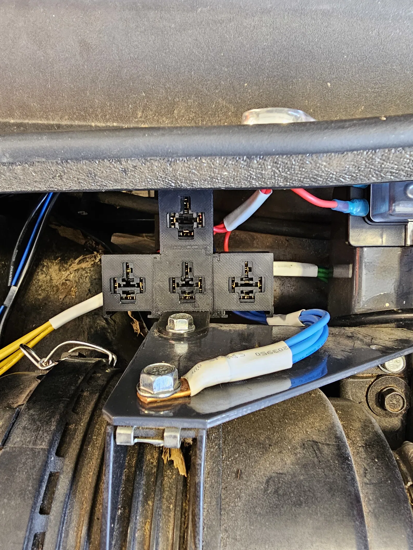Tôi đã tìm kiếm các giải pháp sản xuất hàng loạt và các tùy chọn in 3D khác nhưng không tìm thấy cái nào đáp ứng được nhu cầu của tôi. Các tùy chọn thương mại chỉ cho phép mở rộng theo 1 hướng, tạo ra một dải rơ-le dài và xấu. Hệ thống này cho phép lắp đặt gọn gàng hơn và dễ dàng gắn kết. Tôi dự định mở rộng hệ thống này trong tương lai với các tùy chọn khối gắn mới và các tính năng khác khi có thời gian. Tôi thích nghĩ về nó như Gridfinity của các bộ gắn rơ-le với kế hoạch trong tương lai để biến nó thành một giải pháp mạch điện dưới mui xe tất cả trong một.
