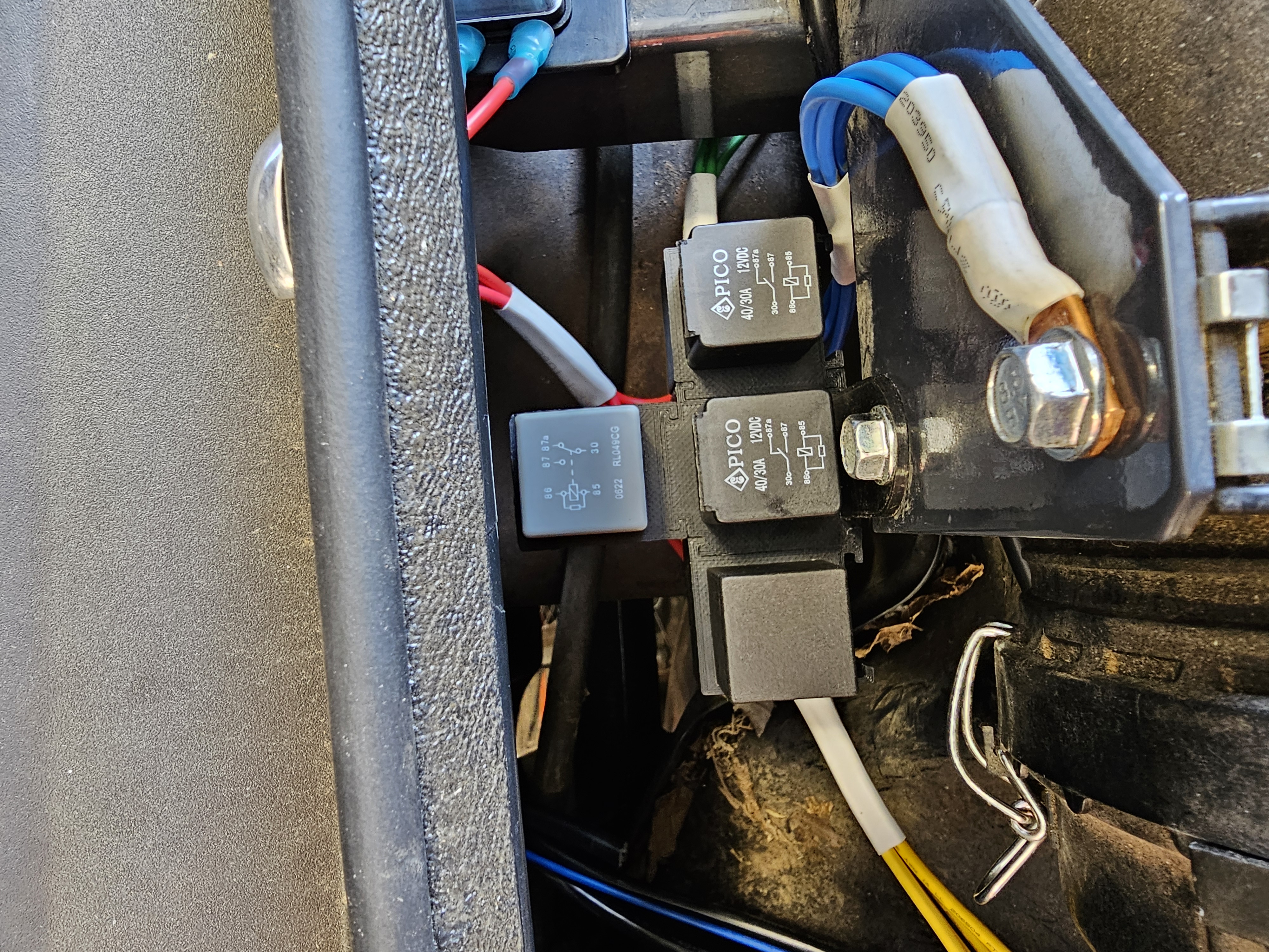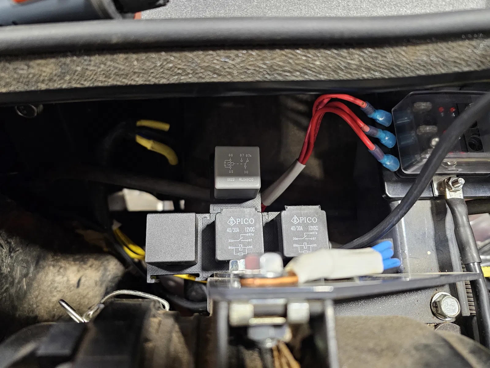 Các khối gắn có thể lồng vào nhau theo nhiều cách khác nhau và kết hợp tùy theo nhu cầu. Ảnh của tôi cung cấp một ví dụ về việc sử dụng hệ thống gần đây cho cấu hình 4 rơ-le khi lắp đặt thanh đèn trên xe địa hình.