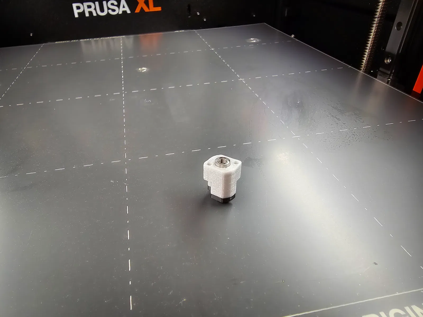 Trục động cơ được in bằng PLA+, đầu phun 0.4mm, chiều cao lớp 0.10mm, 5 lớp vỏ, không cần hỗ trợ hay brim.