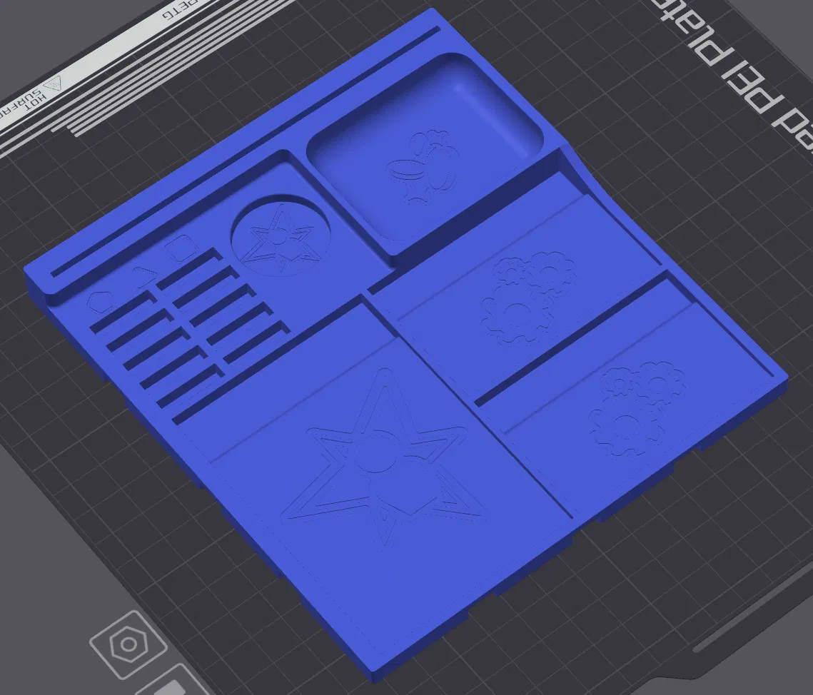 Phiên bản một màu của khay đựng bài Cyberpunk RED-Combat Zone. Mọi thứ đều có ở đây và tương thích với các khay Cyberpunk RED-Combat Zone hiện có của tôi. Khớp nối với nam châm. Làm cho thẻ có bao bọc.