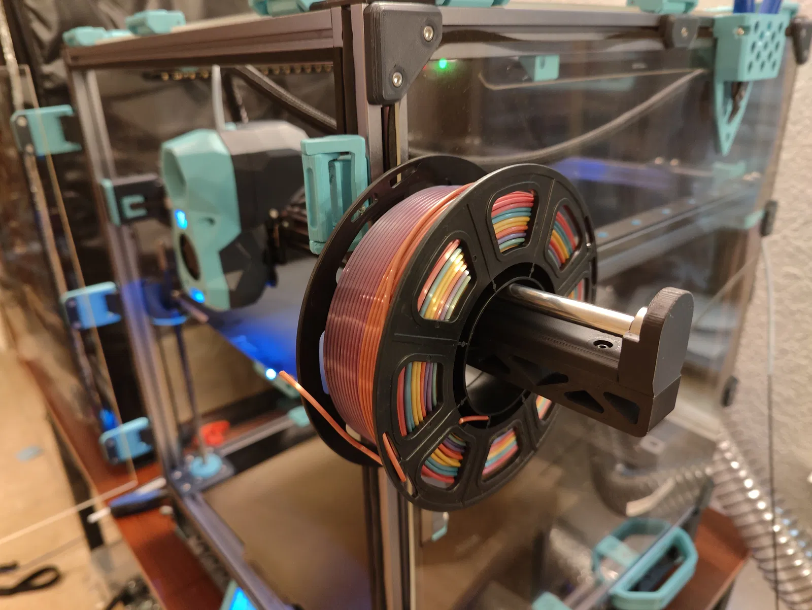 Nếu ống PTFE không phù hợp với bạn, hãy thử con lăn dây tóc Voron gắn bi bên hông này! Với vòng bi cho ma sát thấp, nó đủ chắc để đỡ cuộn 1kg và dọn sạch các chốt cài 2020. Hoạt động với mọi cấu hình panel và có file CAD tùy chỉnh.