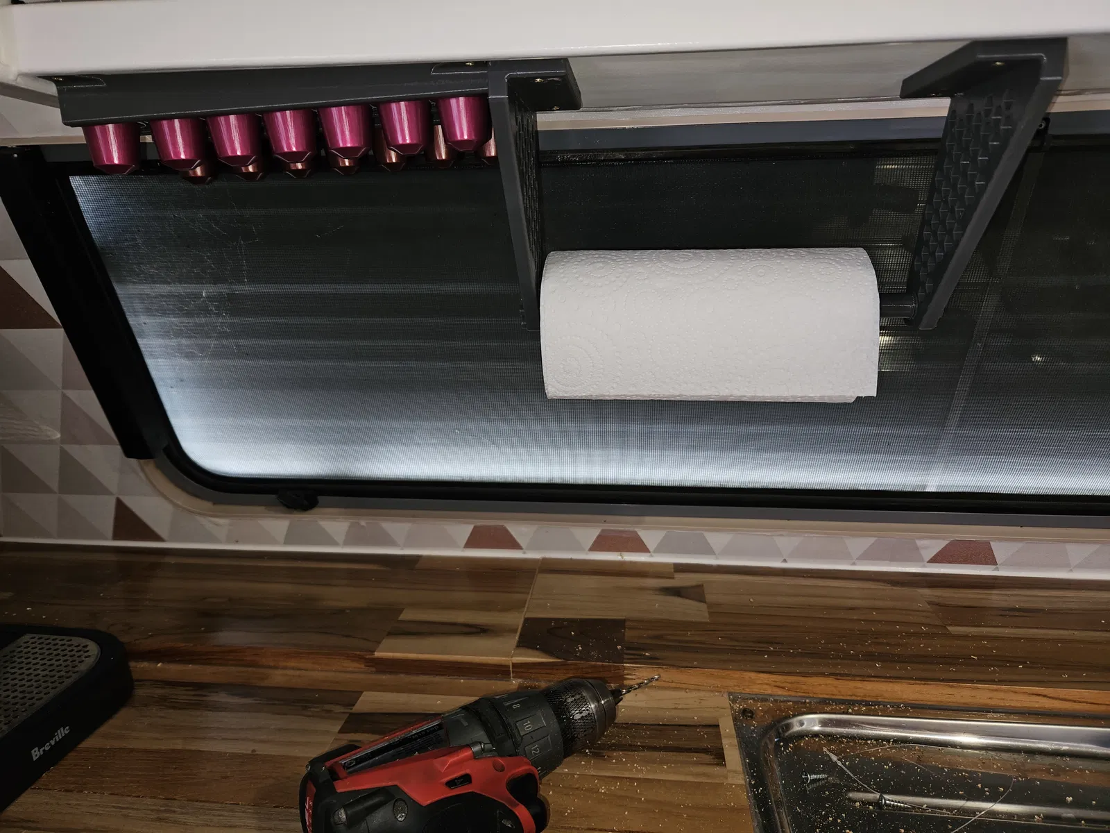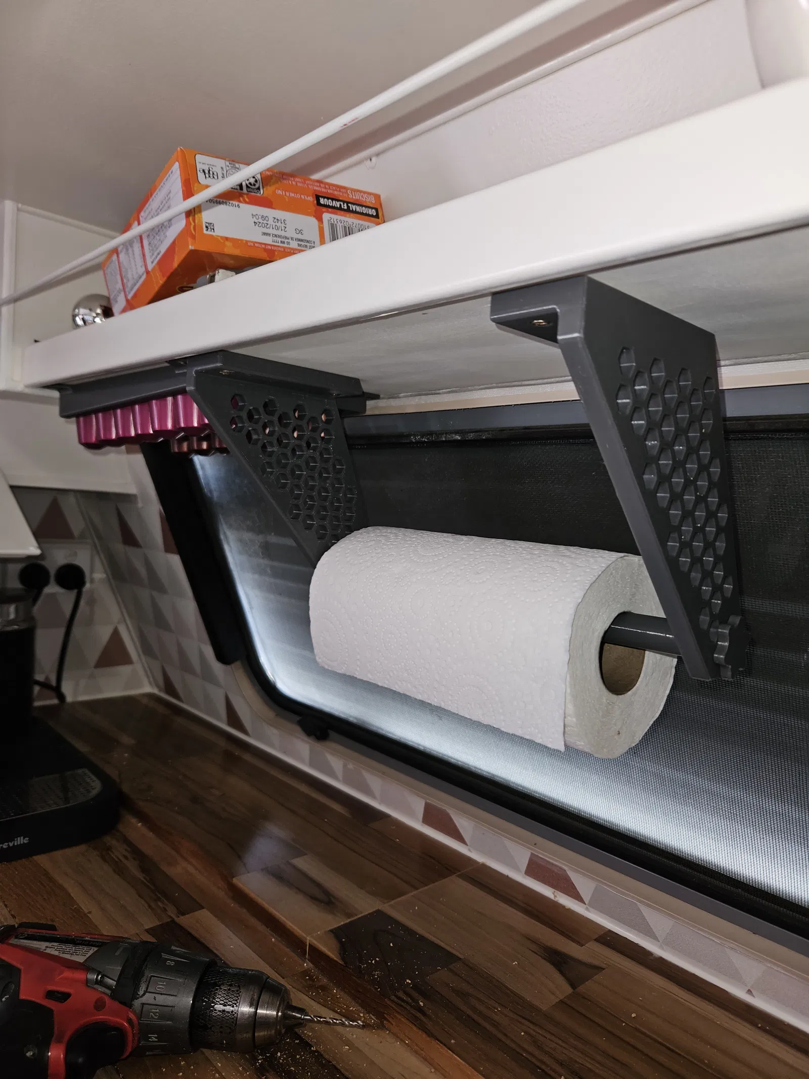 Giá treo khăn giấy/khăn công nghiệp dưới tủ, có lỗ vít âm nên rất lý tưởng để sử dụng cho xe caravan hoặc RV vì nó giữ khăn chắc chắn. Sử dụng 2 vít âm mỗi giá đỡ để gắn.