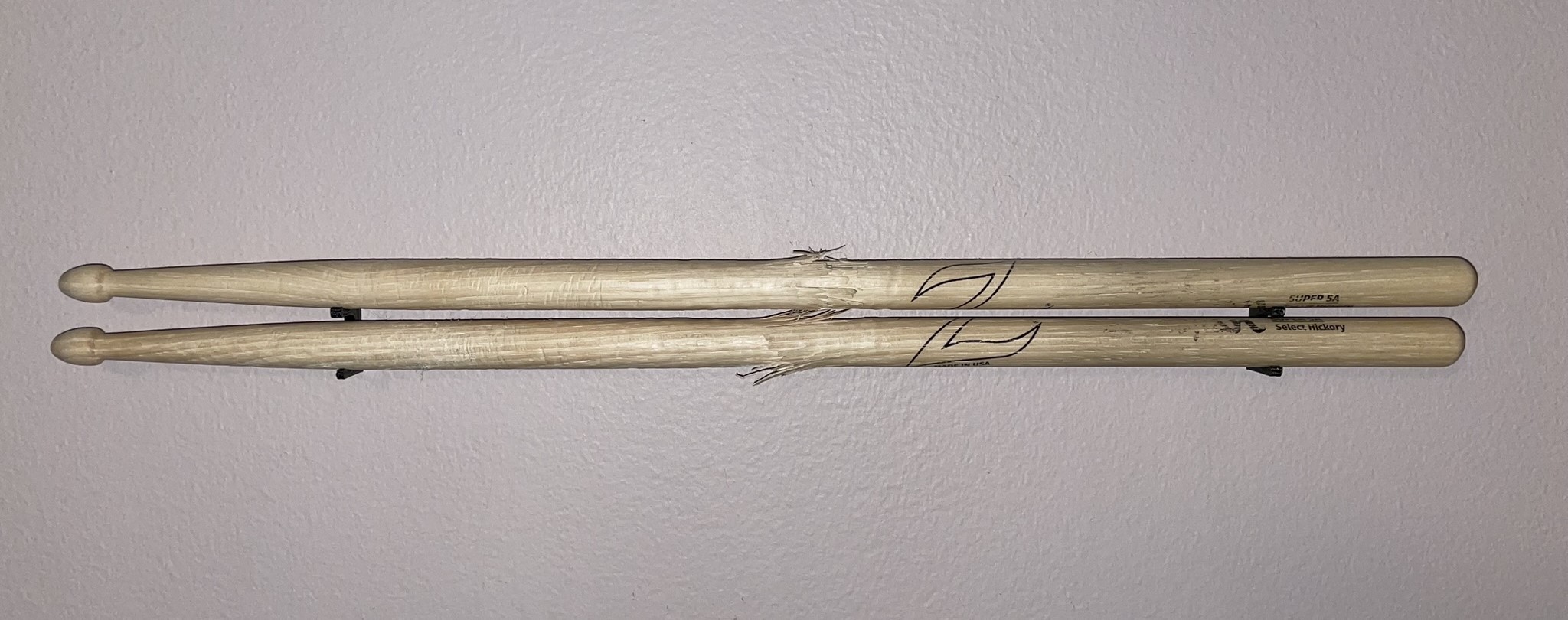 Một giá đỡ mỏng để treo dùi trống của bạn lên tường. Có thể gắn bằng đinh ghim.