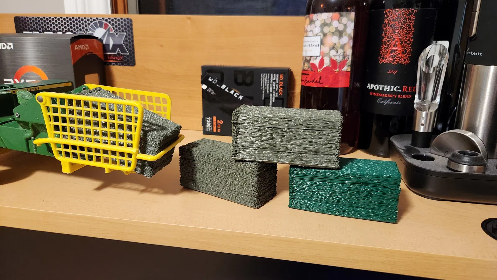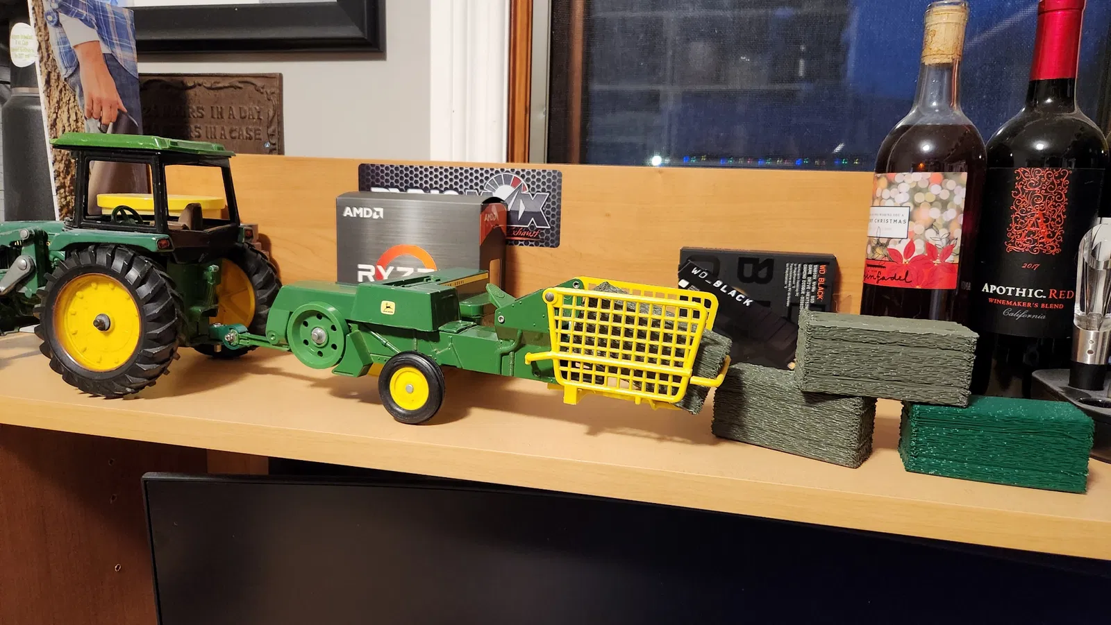 Bó cỏ khô vuông mình thiết kế cho bộ đồ chơi máy móc nông nghiệp tỉ lệ 1/32 của con trai ông bạn.