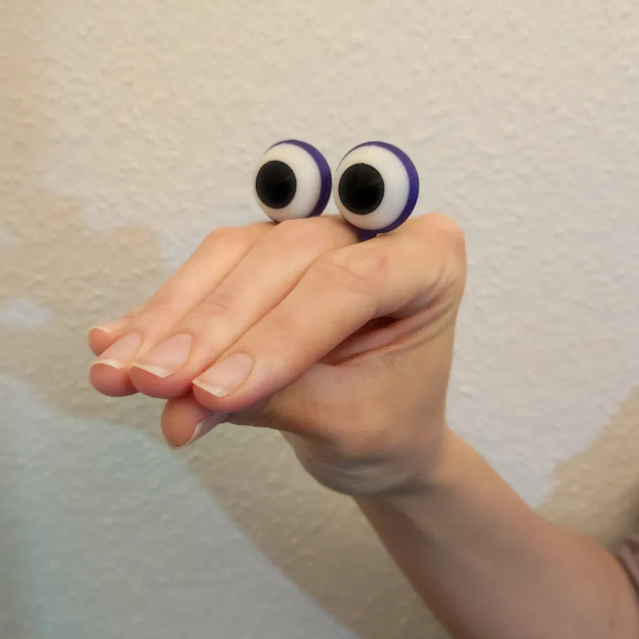 Biến bàn tay của bạn thành một con rối ngộ nghĩnh chỉ với món Đồ Chơi Mắt Ngón Tay này! Dù đơn giản nhưng chúng rất biểu cảm và sẽ mang lại cho bạn nhiều niềm vui! Và tuyệt vời nhất: bạn không cần máy in đa màu để in mấy em này đâu! Bắt đầu với màu thân, chỉ cần đổi sợi nhựa ở 7.2 mm cho tròng trắng, 12.6 cho tròng đen và 14.20 cho con ngươi. Chúc vui!