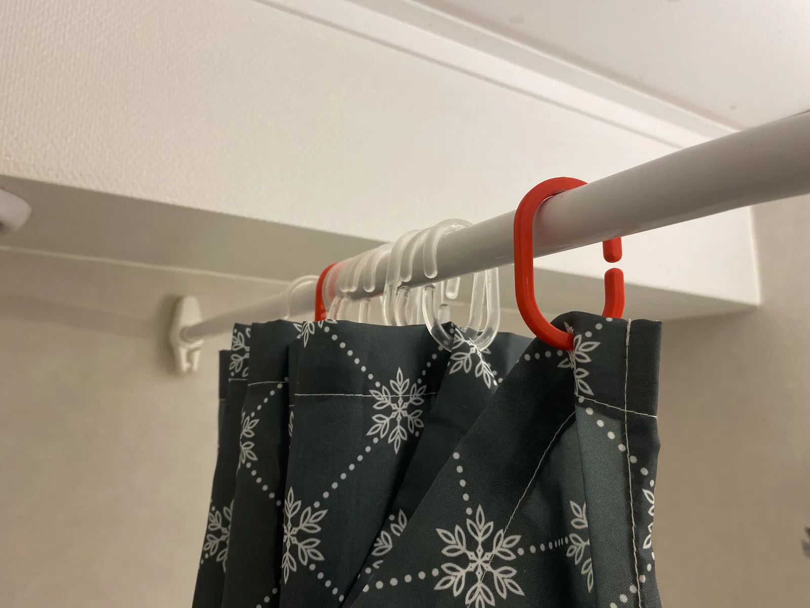 Móc treo rèm nhà tắm thay thế cho cái rèm nhà tắm nhà tui. Tui nghĩ mấy cái này xài cũng được cho đa số loại rèm luôn á, còn nếu ai có loại rèm hơi đặc biệt thì nhắn tui nha, tui cố gắng làm cho!