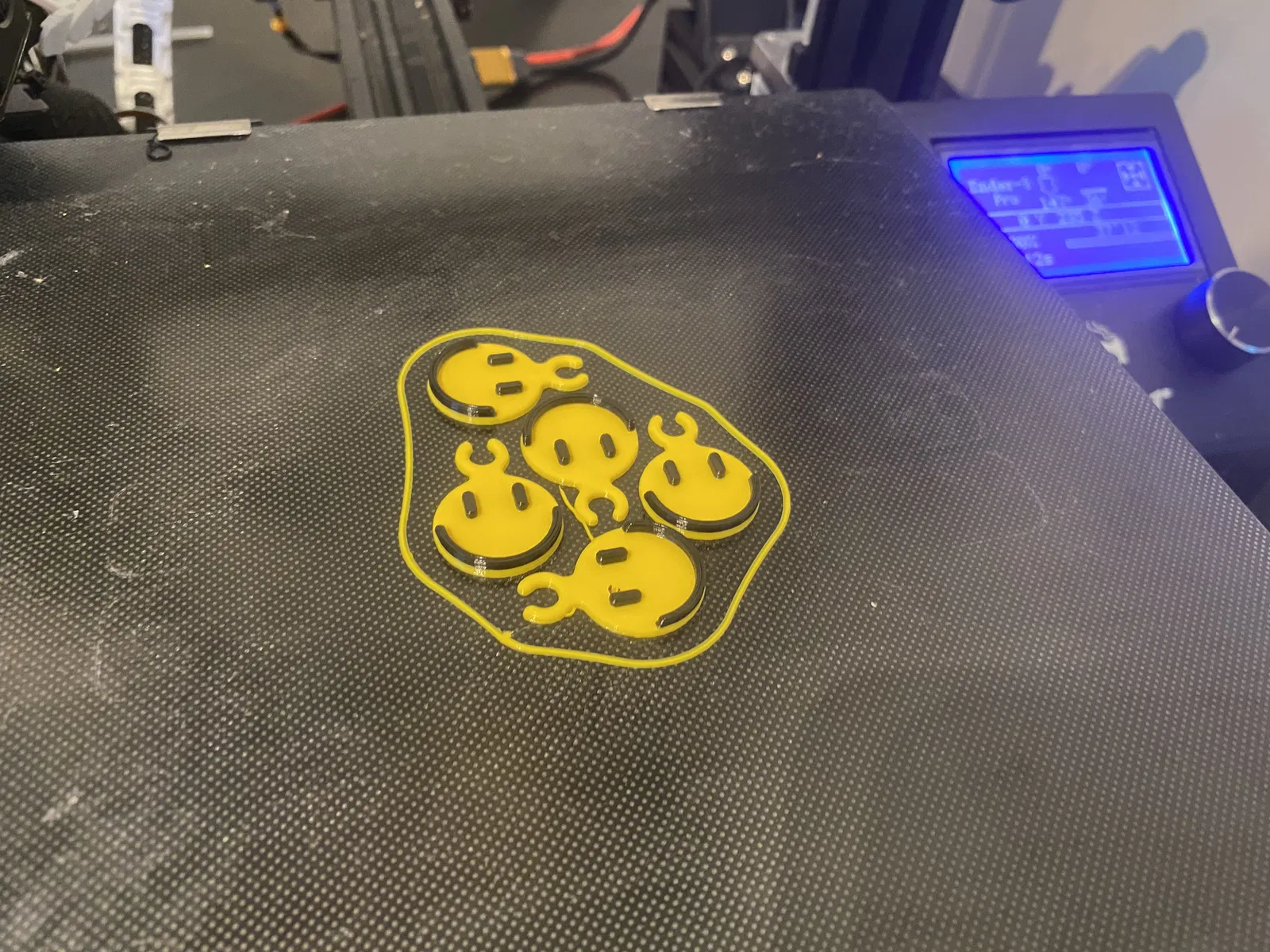 Để in được 2 màu cho cái mặt cười nó nổi bật, bạn tạm dừng máy sau 7 lớp rồi đổi màu là được.