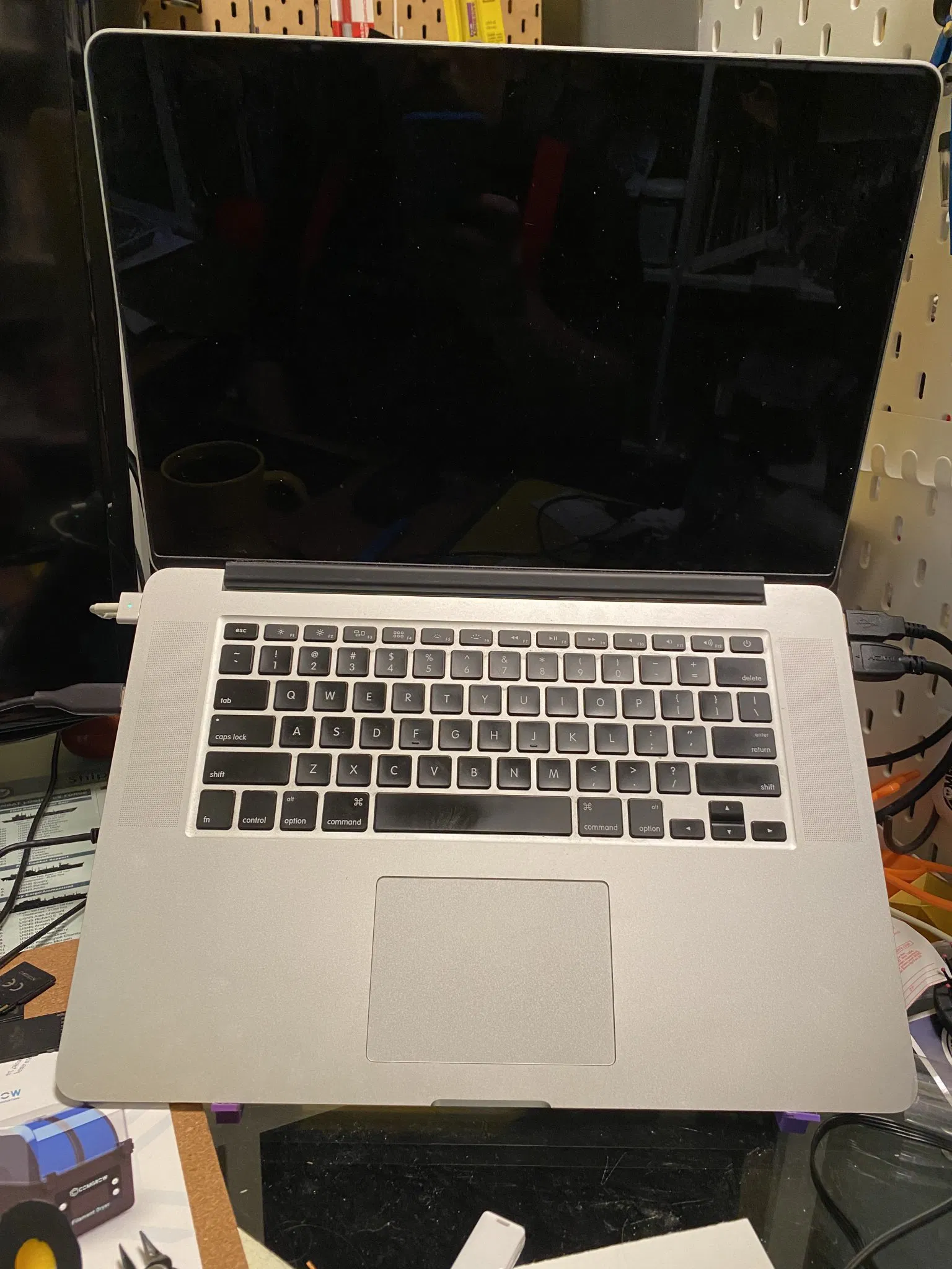 - Cái đỡ có một chốt tháo rời vào mỗi giá đỡ để giữ chúng ở vị trí, và cung cấp độ căng khi trọng lượng của laptop hiện diện.