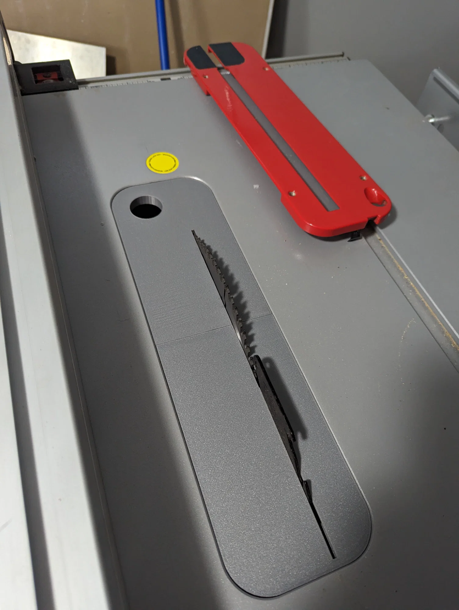 Lưỡi cắt gọt vừa vặn (zero clearance insert) cho cưa bàn Bosch 4100XC. Phiên bản này có 2 phần, với 2 lựa chọn cho phần 2 tùy thuộc vào việc có sử dụng riving knife hay không. Cần 2 vít M3 x 5 để lắp ráp và keo CA để cố định.