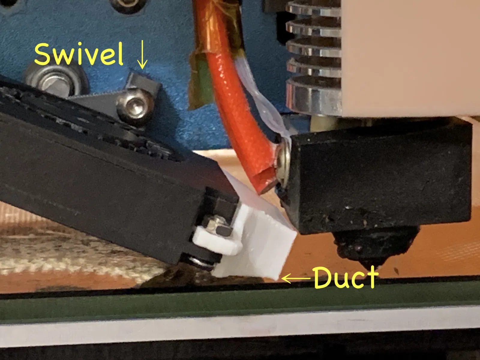 Vứt mấy cái ống dẫn khí làm mát phụ kiện đi. Gắn quạt 4010 vô đế xoay này và chỉnh hướng nó vô đầu vòi phun. Quạt Wathai thì êm ru, có sẵn ốc 2.5 mm, bạn chỉ cần thêm ốc M3x16 nữa. Đã cập nhật đế xoay và thêm tùy chọn cho đầu nóng Volcano.