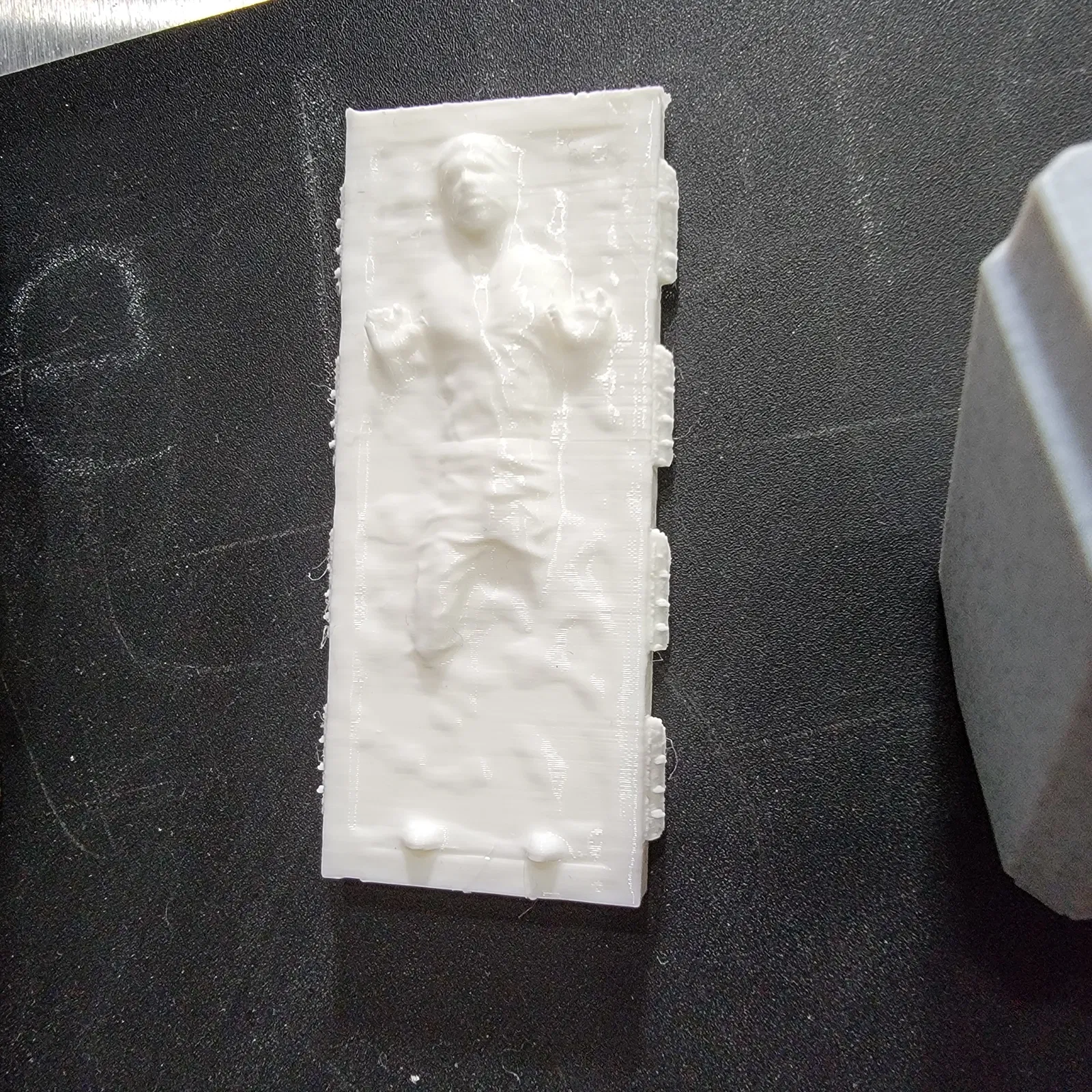 Mô hình Han Solo đông lạnh, có thể làm móc khóa hoặc nam châm tủ lạnh! Hoàn hảo cho người hâm mộ Star Wars. In bằng PLA, STL có sẵn. Phiên bản này đã được tối ưu hóa để dễ dàng thêm móc khóa hoặc nam châm 6x2mm, với tùy chọn in ở độ cao lớp 0.16mm cho chi tiết sắc nét.