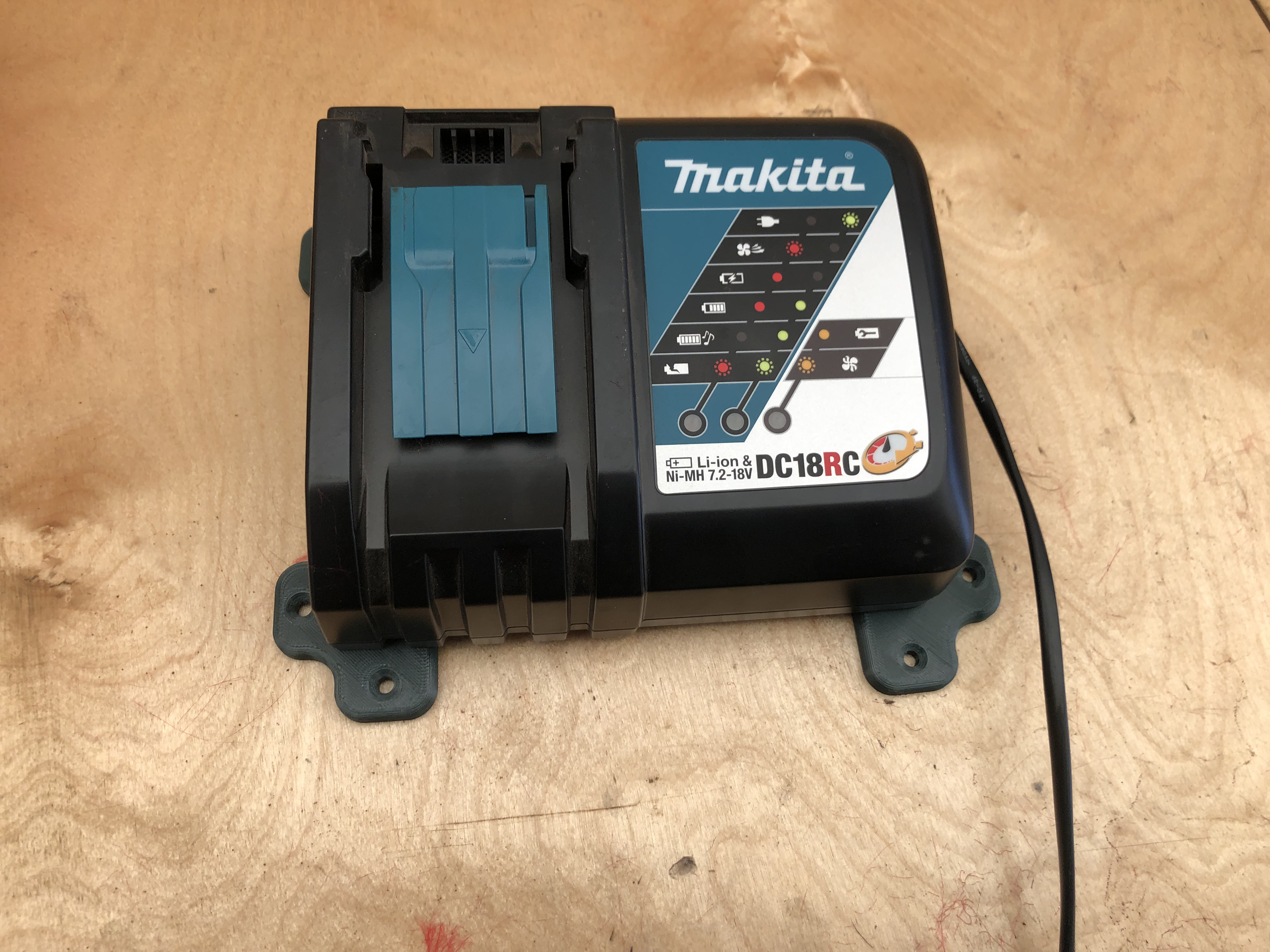Một cái đế mà khi in theo cặp có thể dùng để treo sạc Makita DC18RC lên tường.