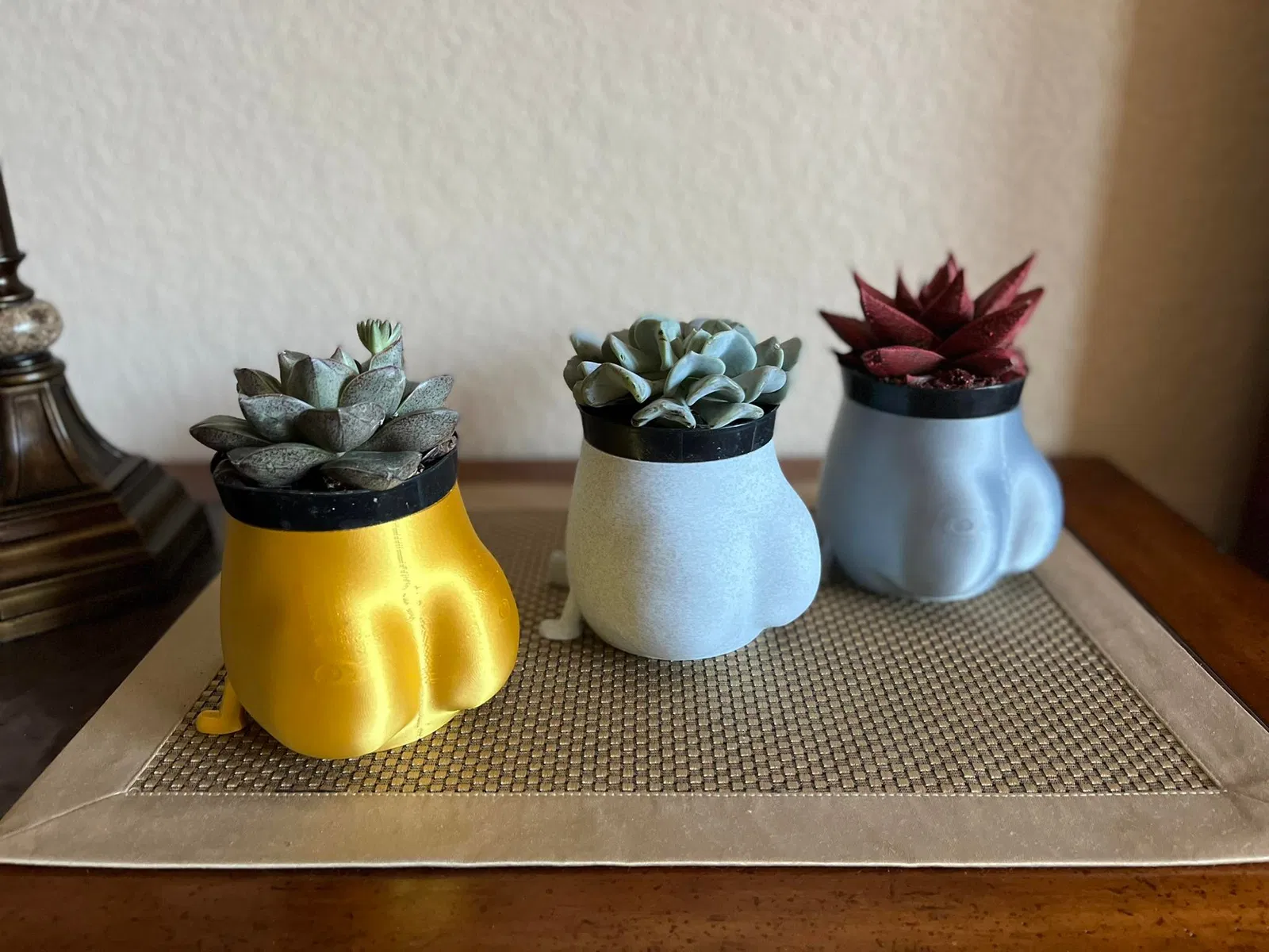 Anh bạn mập mạp này có thể dùng để trồng cây, đựng bút hoặc nhiều vật dụng khác. Thiết kế độc đáo này không cần giá đỡ khi in, rất phù hợp để đặt trên bàn làm việc.