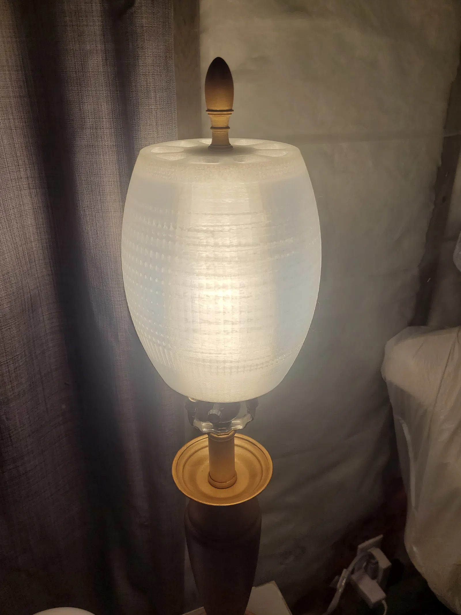 Cần cái chao đèn gấp để đãi khách ghé chơi. Tui in bằng PLA trong suốt, tuy hơi lâu mà thành phẩm đẹp lắm. Lưu ý chỉ dùng với đèn LED thôi nha.