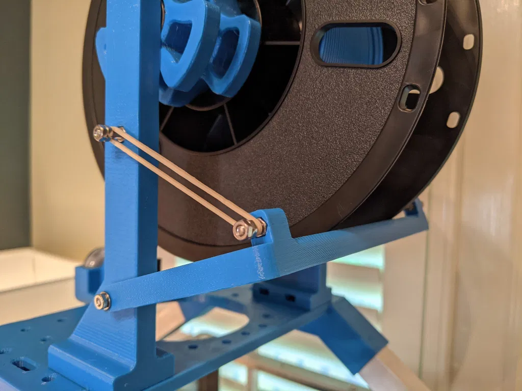 Để điều chỉnh ma sát, tôi đã thêm một thanh gạt đơn giản gắn vào đáy giá đỡ cuộn dây bằng vít và đai ốc M3. Cả hai bộ phận đó đều có các lỗ bổ sung cho vít M3 mà bạn có thể sử dụng để gắn dây cao su kéo thanh gạt vào cạnh cuộn dây.