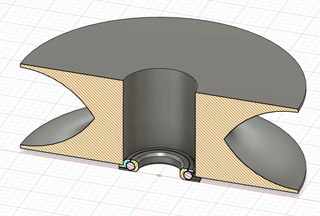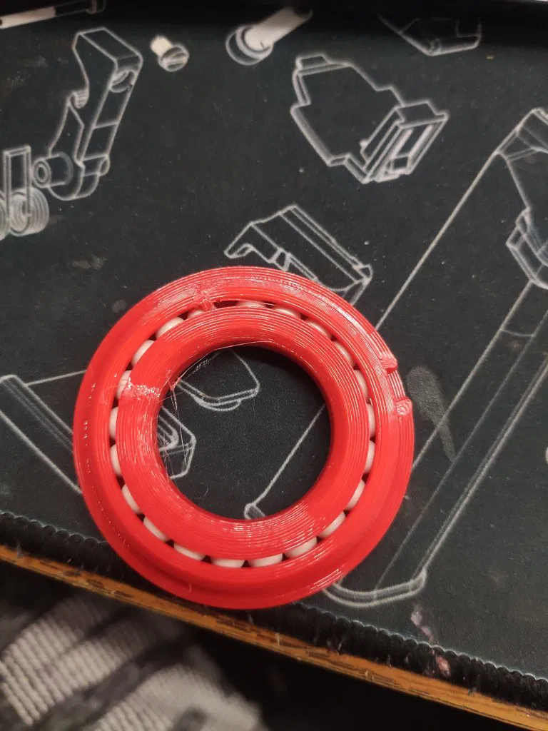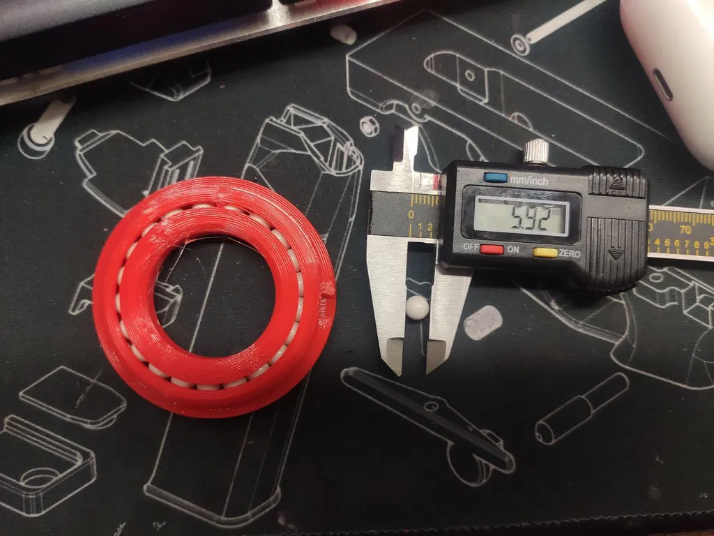 Đây là một cái đế giữ cuộn dây 3D, cho phép cuộn dây nằm ngang, đồng thời giúp nó quay dễ dàng. Cái này dùng khoảng 20 viên bi Airsoft 6mm (5.92mm) làm vòng bi. Độ dung sai lớn được tích hợp vào thiết kế