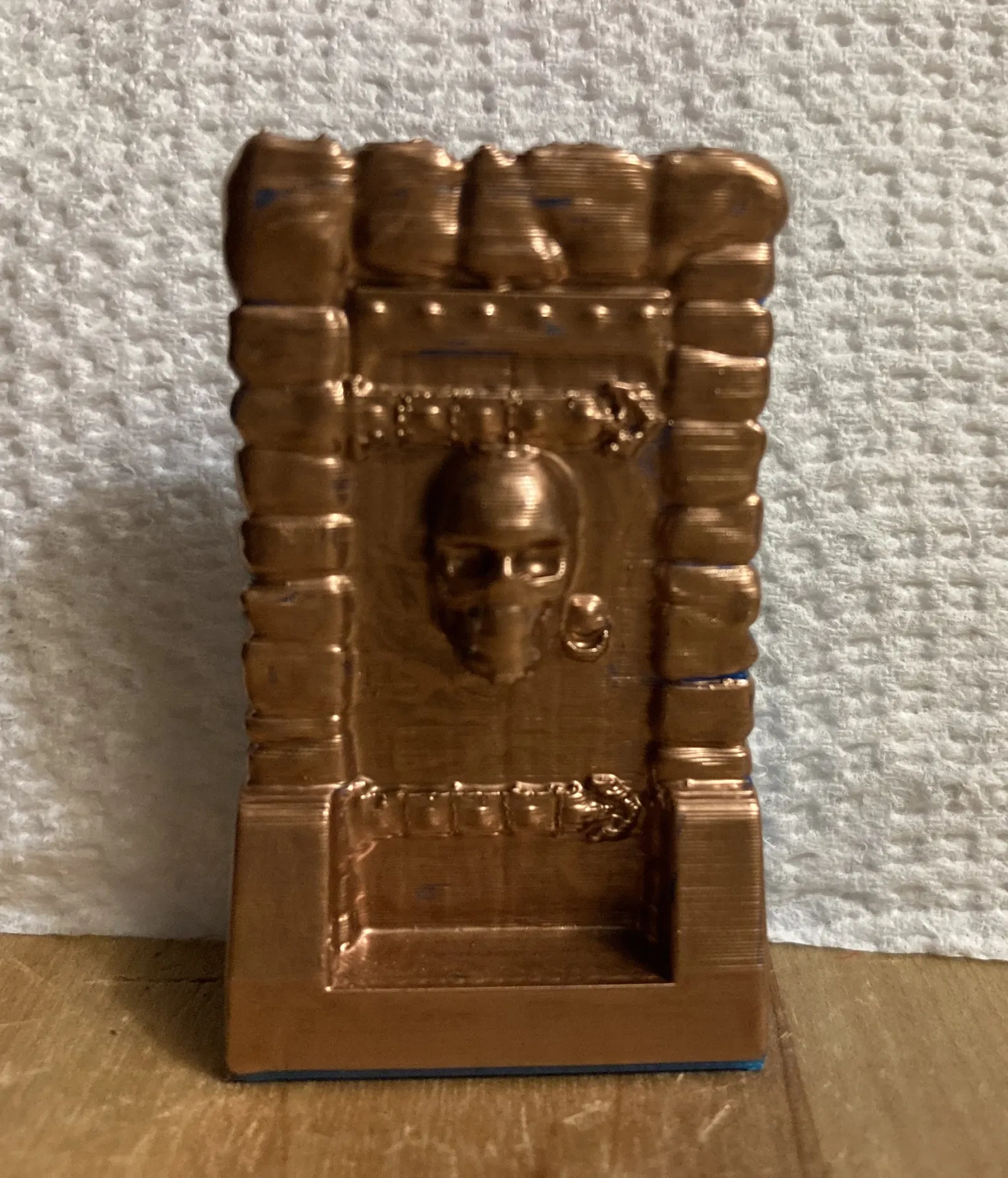 Cửa Gỗ & Kim Loại HeroQuest dành cho Anh Hùng khi ra vào kịch bản nhiệm vụ. Cửa có hình đầu lâu người trên đó. Tôi khuyên bạn nên in với hỗ trợ cây thủ công nếu slicer của bạn là (Orca/Prusa/Bambu) sau đó thêm bộ thực thi hỗ trợ hình trụ dưới cằm của mỗi đầu lâu. Đối với người dùng Cura, hãy sử dụng tiện ích bổ sung hỗ trợ tùy chỉnh và đặt một hình trụ rỗng dưới cằm của đầu lâu. Tôi đã in Cửa bằng Prusament Azure Blue PLA ở 210c (225c lớp ban đầu) với nhiệt độ bàn là 65c (70c ban đầu). Tôi đã sơn cánh cửa Gỗ bằng bút sơn đồng. Sử dụng vành hoặc tai chuột/tab cho các góc để chúng không bị bong ra khỏi bàn in. Đặt hỗ trợ chỉ trên mặt bàn in.