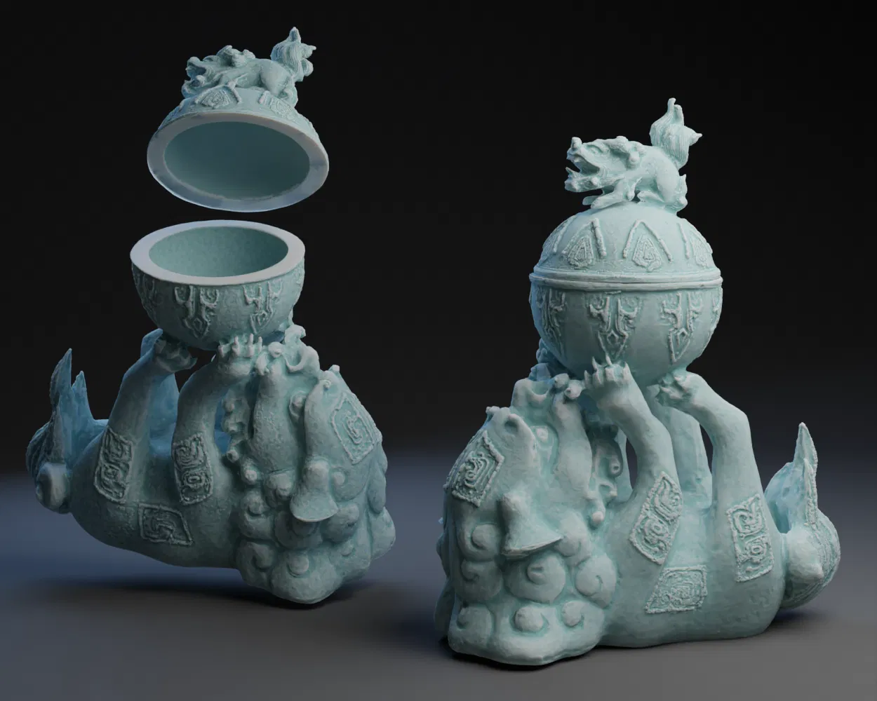 Chiếc bình mực độc đáo này được tạo hình theo hình tượng sư tử Trung Hoa oai vệ, mang đậm nét văn hóa truyền thống. Thích hợp làm vật trang trí hoặc đựng đồ dùng nhỏ.