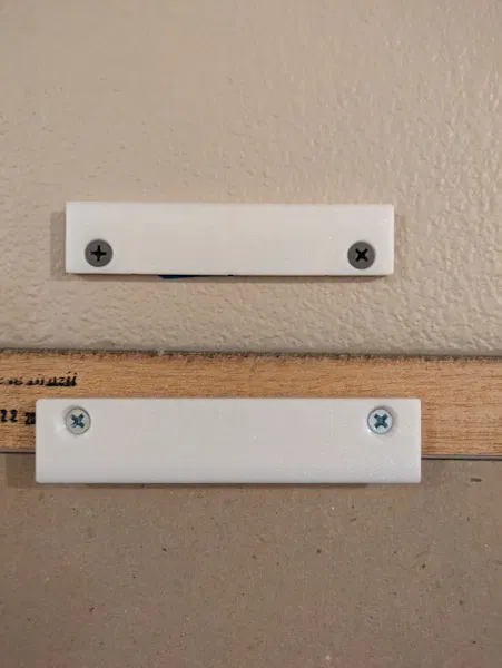 Giá treo tường kiểu thanh trượt kiểu Pháp dành cho khung ảnh. Lắp phần có rãnh lên tường và phần có chốt định vị lên trên khung. Tôi dùng vít thạch cao tiêu chuẩn cho tường và vít gỗ 1/4" cho khung.