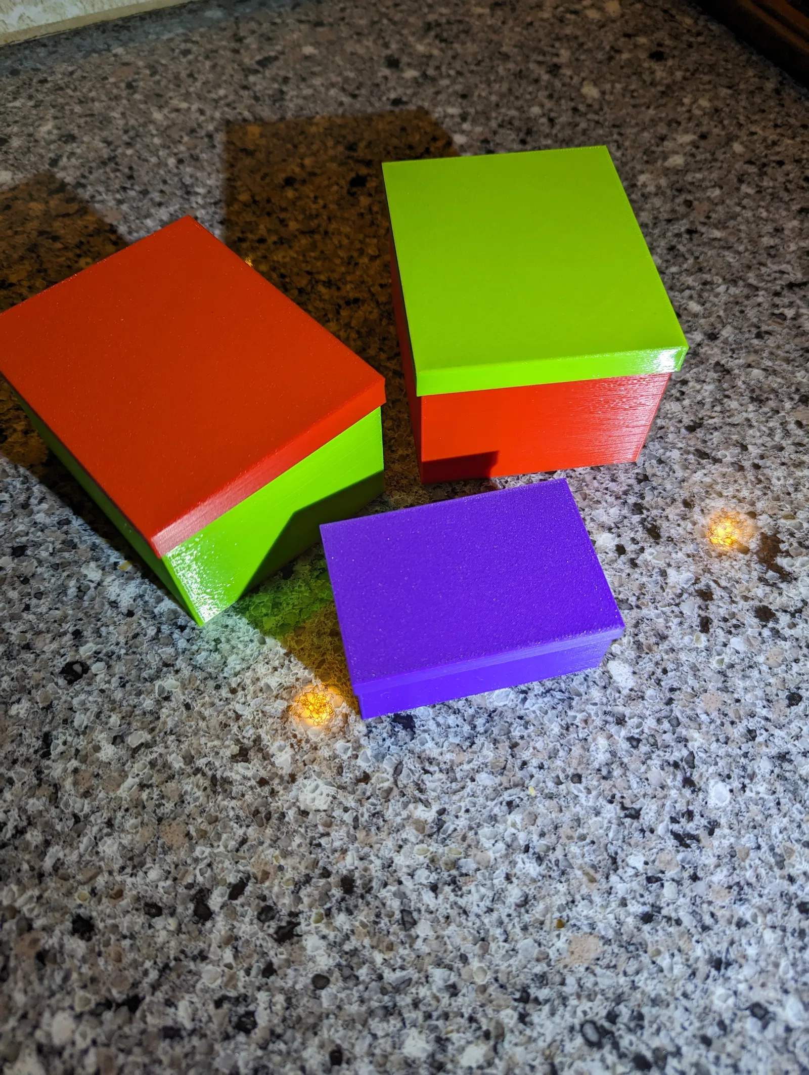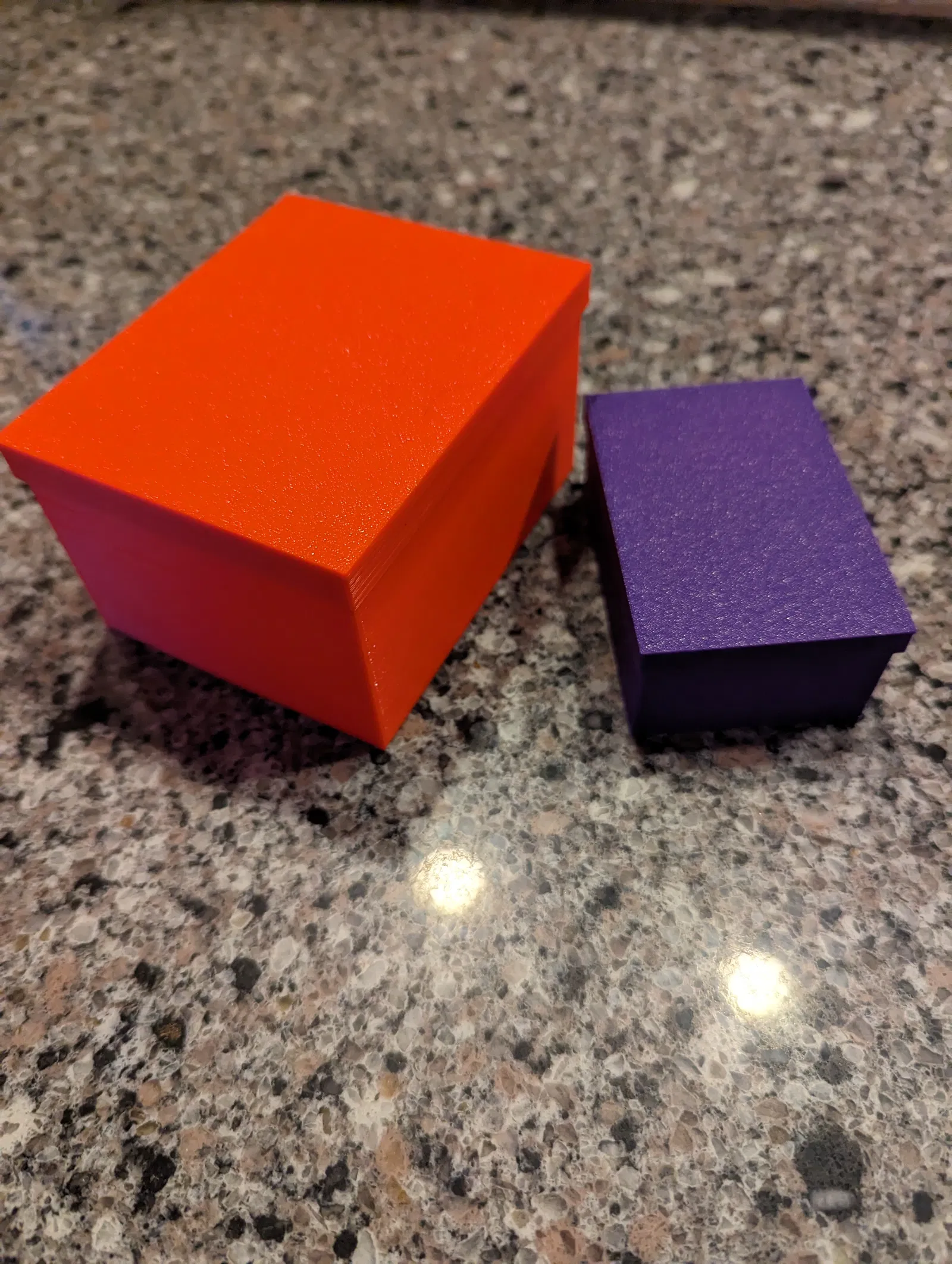 Hai hộp nhỏ với nắp rời, vừa vặn. Trọng lượng nhẹ, kiểu dáng cơ bản, thích hợp làm hộp quà hoặc hộp đựng linh kiện. Có thể in riêng từng bộ phận với màu sắc khác nhau.