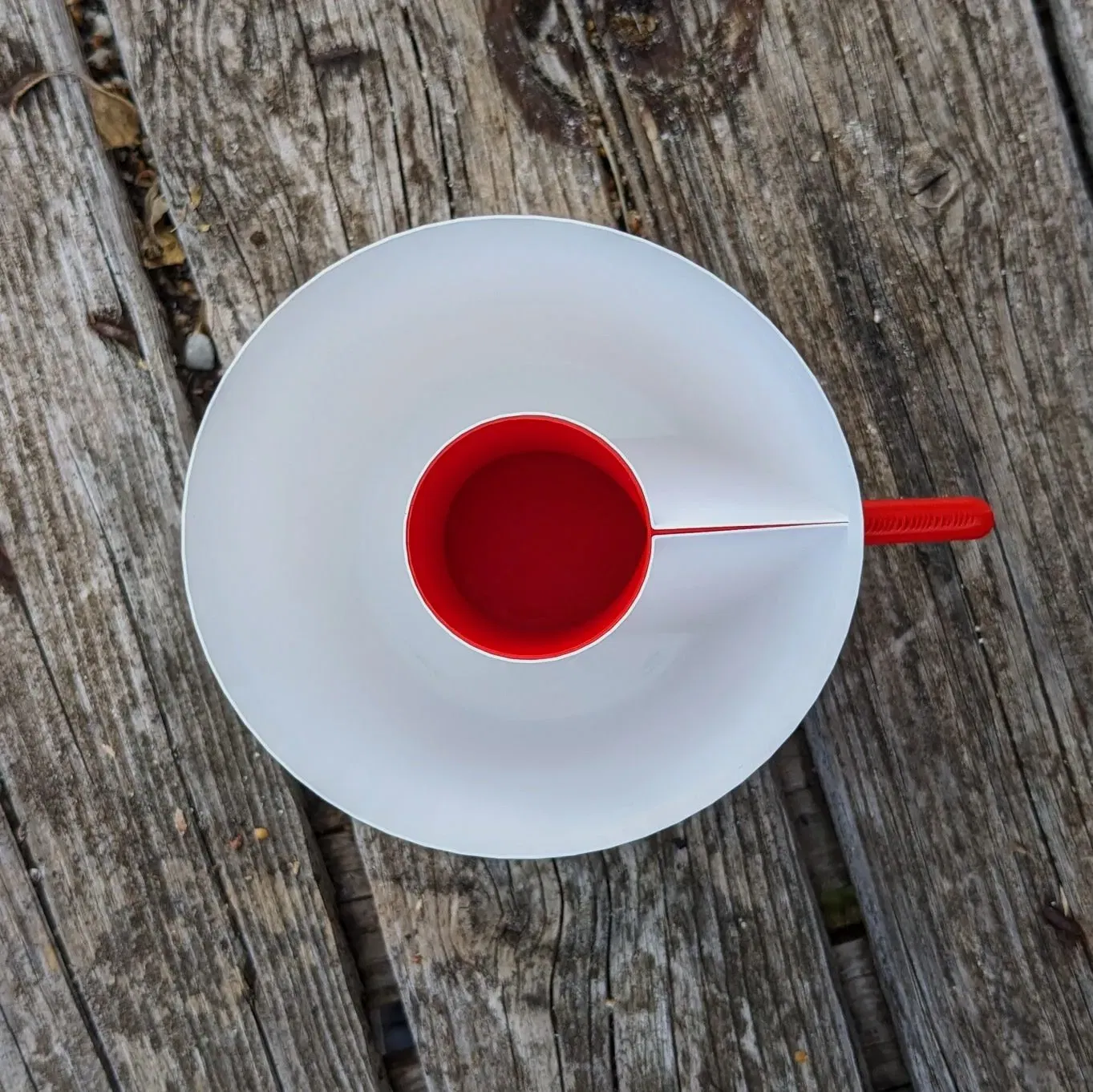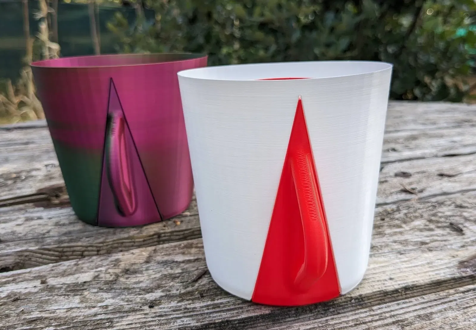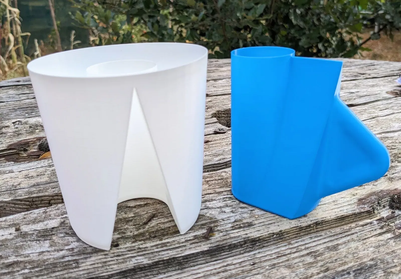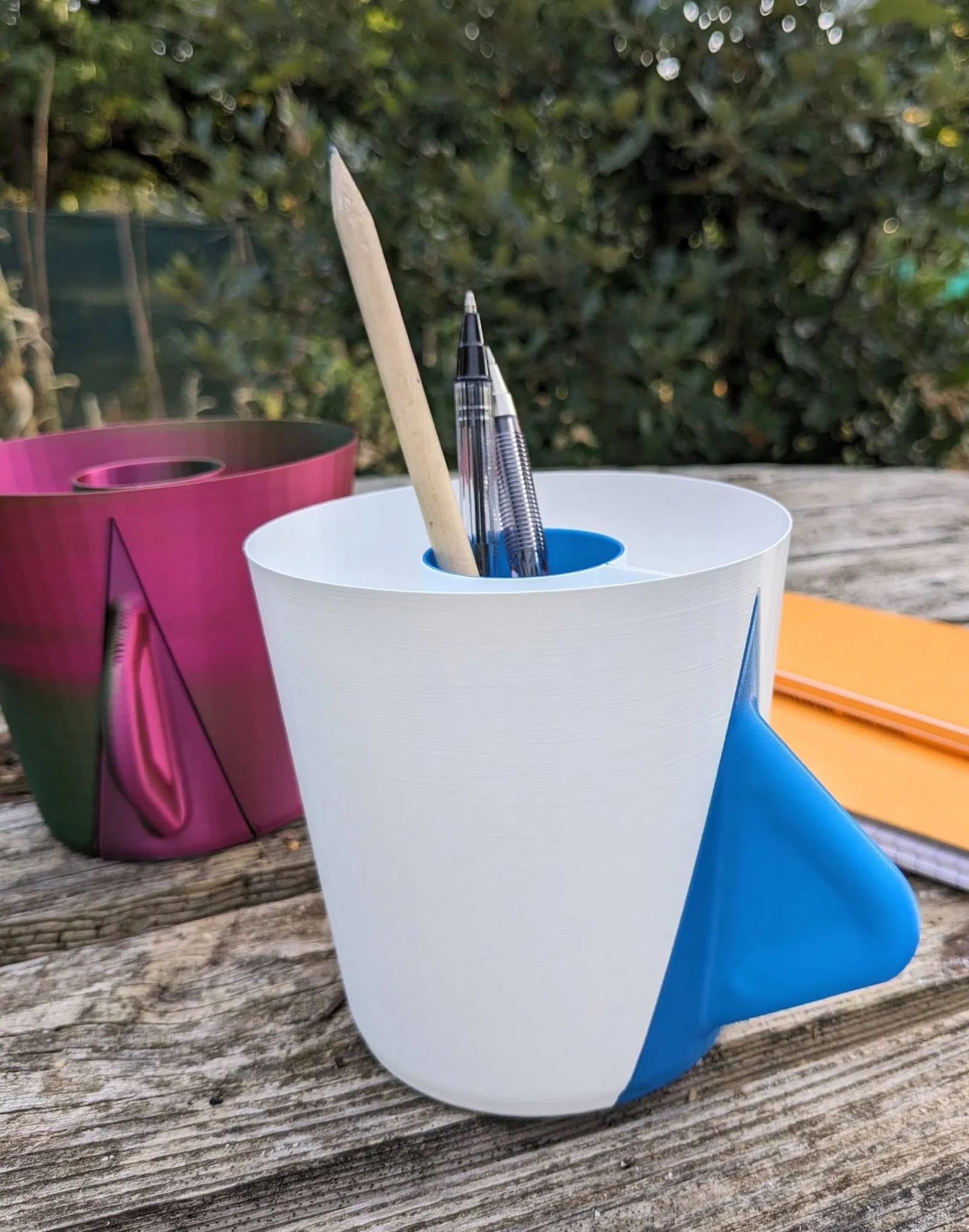 Một giá đỡ bút hai phần trông giống như một cốc cà phê. Lấy cảm hứng từ giá đỡ bút “C” của tôi nhưng ngược lại, phần B trượt từ dưới lên vào phần A và bạn cầm nó như một cốc đồ uống nóng. Chiếc chêm và hình trụ giữ cho cụm này được gắn chặt với nhau.