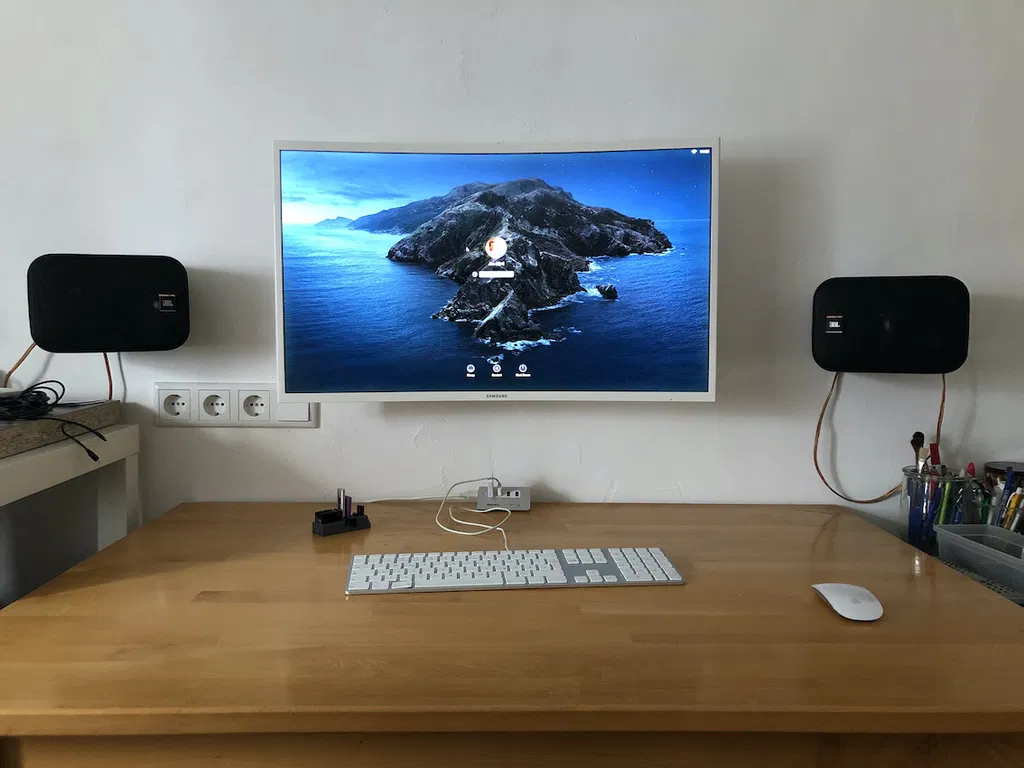 Khoảng cách giữa tường với màn hình là 92mm! Dùng ốc 8mm dài 80-85mm nha.