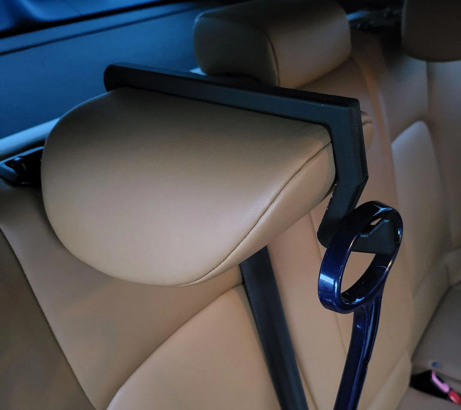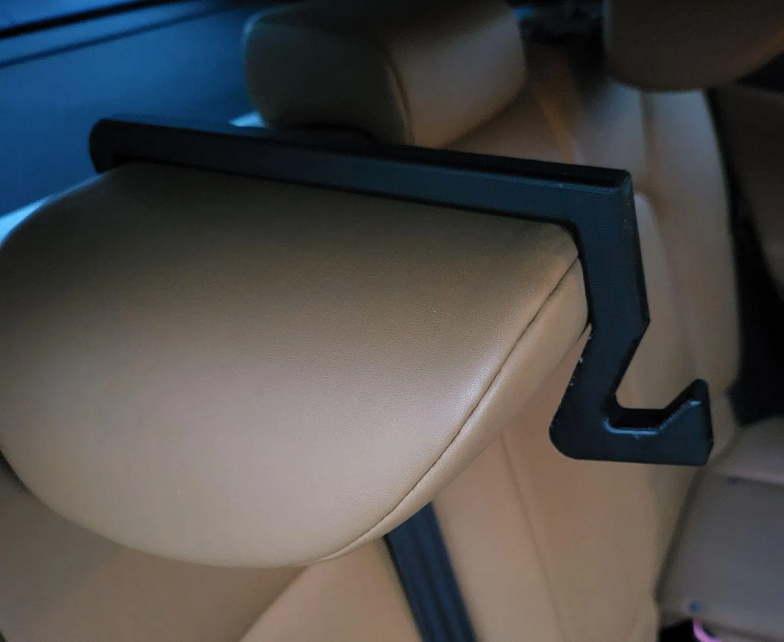 Với cái móc treo đồ này, bạn có thể treo đồ dưới tầm ghế ngồi, không che khuất tầm nhìn ra ngoài cửa sổ nữa. Nó được thiết kế để hoạt động với phần tựa đầu ở vị trí lên hoặc xuống.