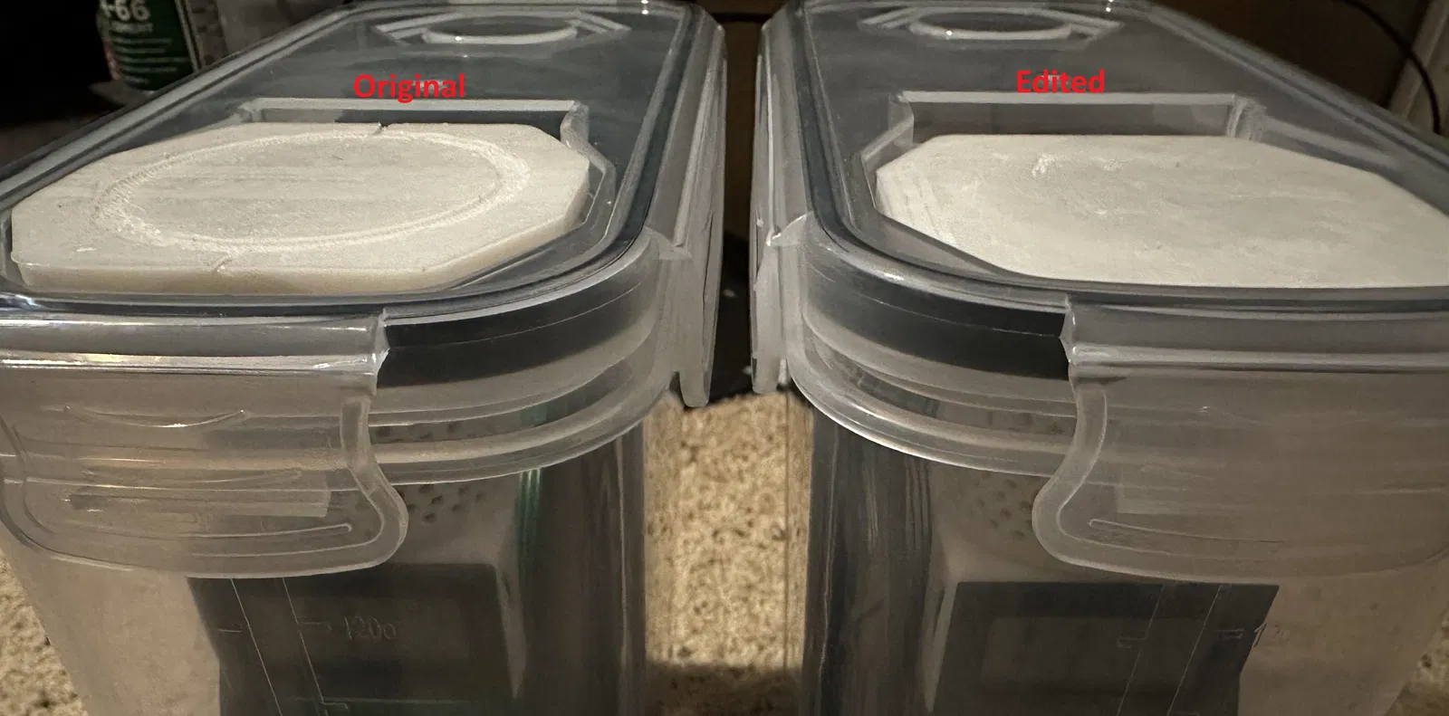 Tui đã chỉnh sửa cái nắp cho bộ Giá đỡ Cup hút ẩm / Đồng hồ đo độ ẩm kết hợp cho Hộp sấy Filament. Cái nắp gốc nhìn đẹp trên bản xem trước của slicer, nhưng khi in ra thì nó chỉ toàn là hoa văn lượn sóng và trông không được đẹp lắm. Tui đã import thẳng model vô Tinkercad và xóa bỏ hoa văn trên đỉnh đi để nó thành một mặt phẳng. Tui cũng sửa bỏ cái gờ thêm vào, nên cái nắp nó nằm lọt hẳn vô cái nắp hộp luôn thay vì bị nhô lên chút. Bạn vẫn có thể cầm nó lên và rút ra khỏi hộp nếu cần hoặc đẩy nó lên từ phía dưới.