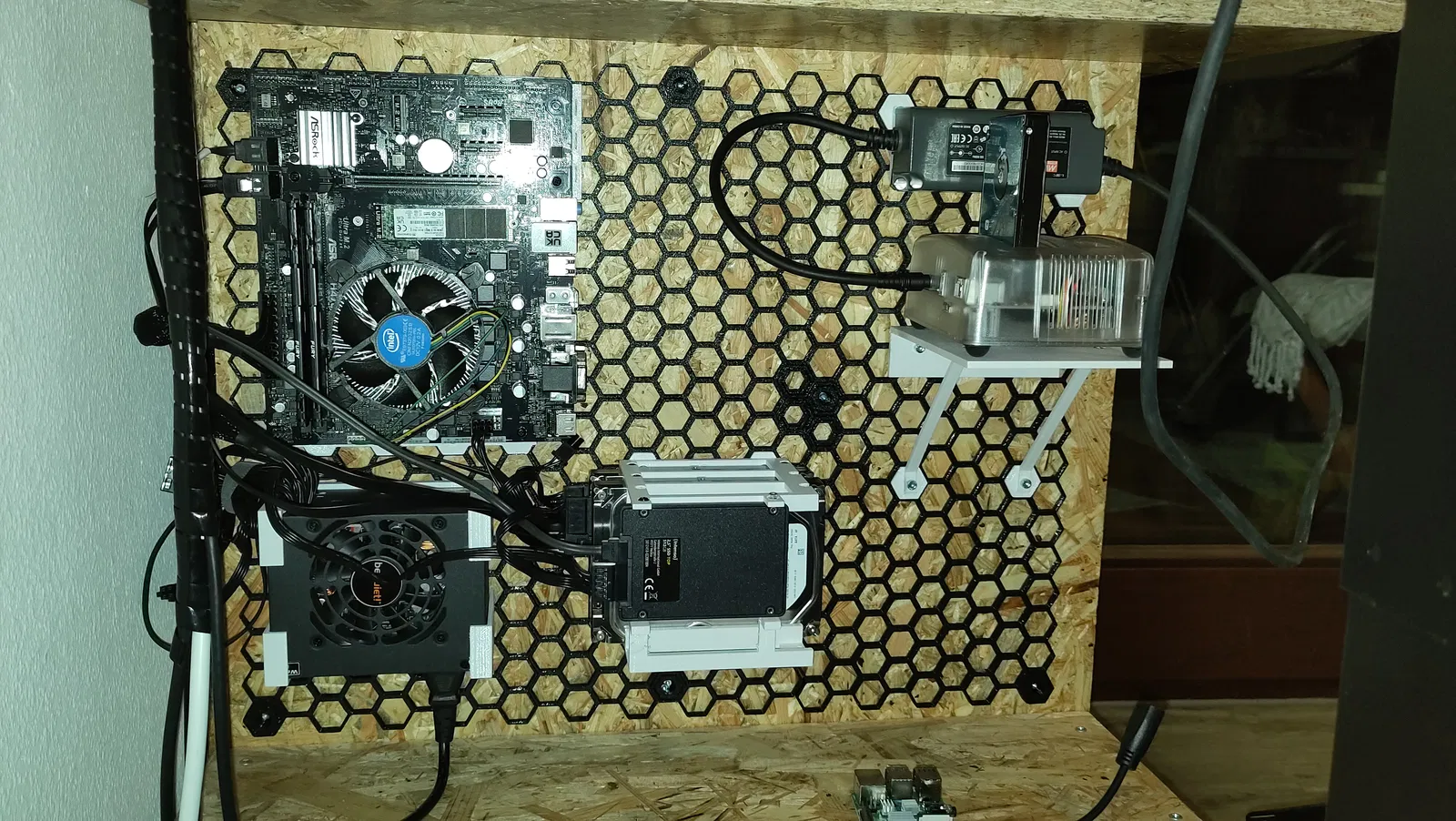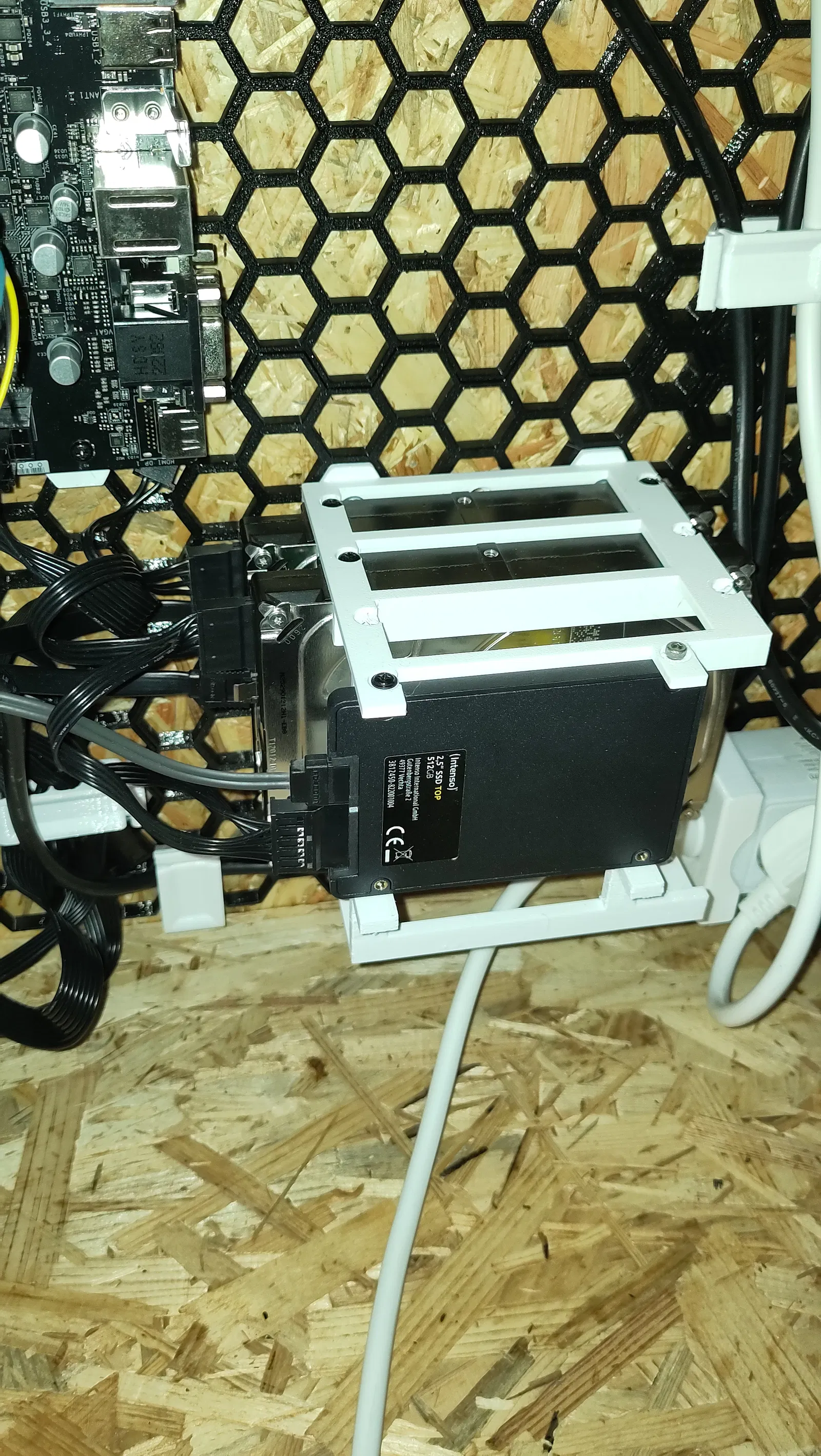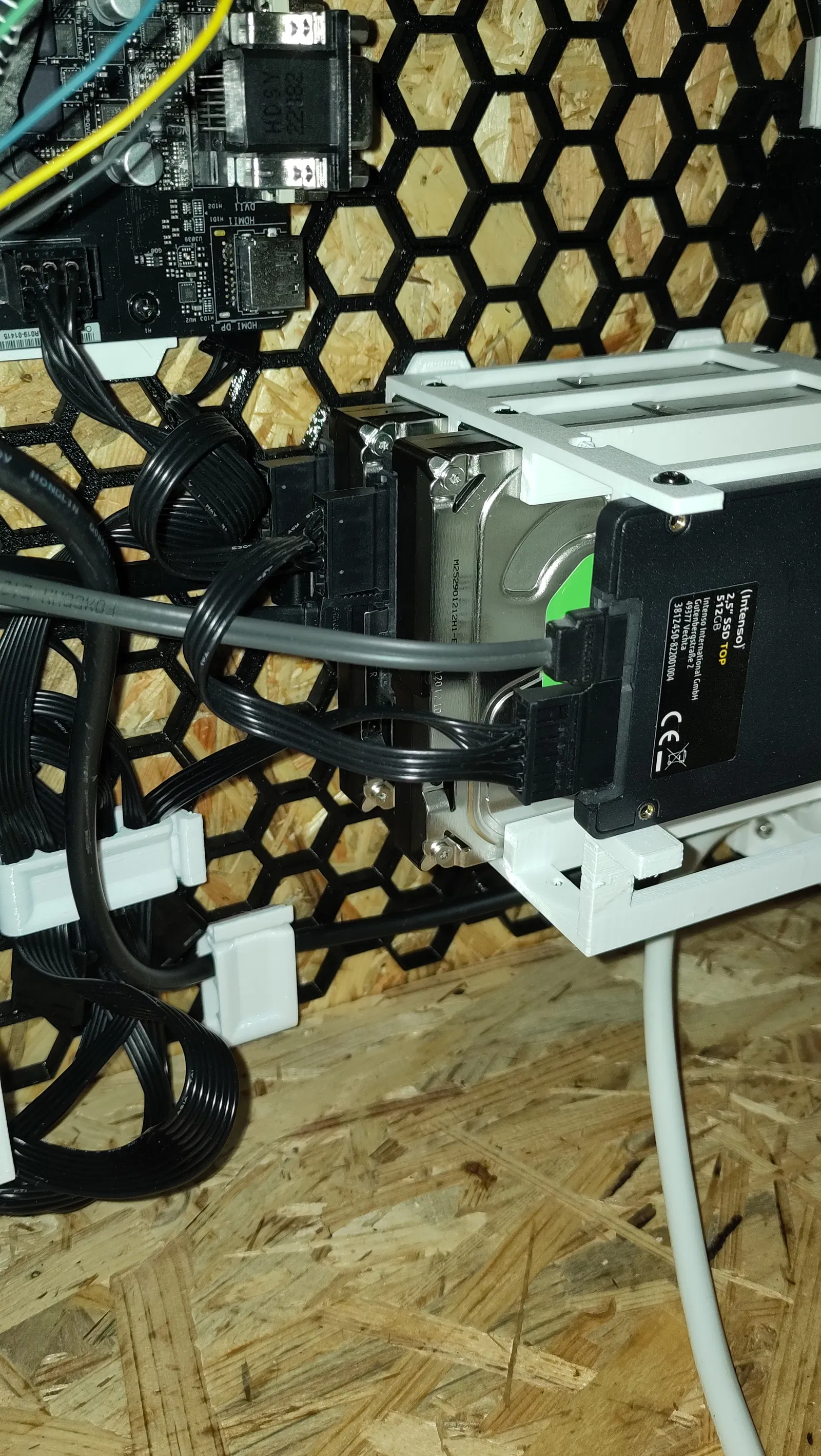 Đây là một cái đế cho ba ổ cứng 3.5" và một ổ cứng 2.5", có thể gắn lên HSW. Bạn có thể in bằng PLA hoặc PETG.