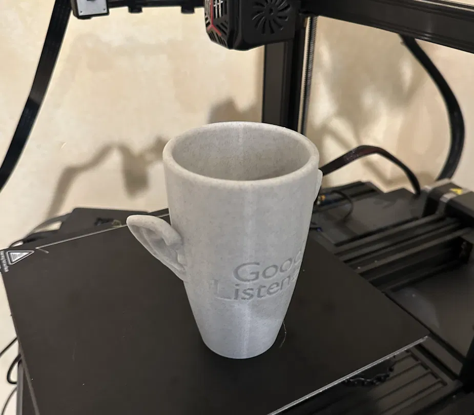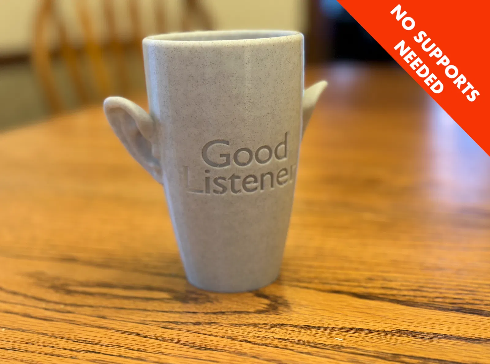 Món quà ý nghĩa dành tặng những người biết lắng nghe. Chiếc cốc này được thiết kế in liền, không cần support, dễ dàng thực hiện. Lưu ý tránh nhiệt độ cao để giữ phom dáng.