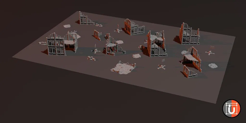 Các tòa nhà / tàn tích được tạo ra bằng trình tạo địa hình của tui, cái này cũng nằm trong bộ công cụ tạo mẫu ( https://udos3dworld.com/generator.html ).