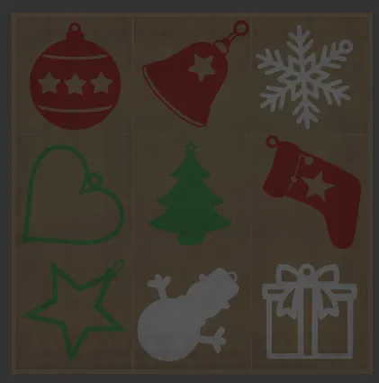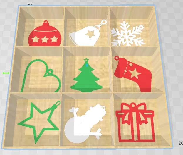 Bộ đồ trang trí treo tường kèm hộp đựng. Kích thước hộp 180x180x30mm, kích thước hình trang trí 50x50x1mm. Có thể tùy chỉnh chiều cao hộp theo ý muốn khi in.