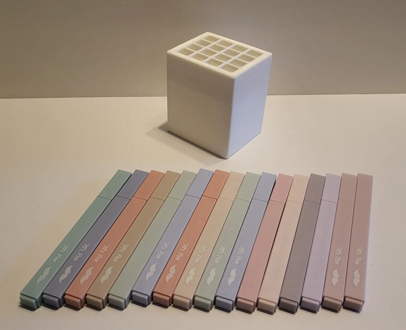Tạo một hộp đựng bút dạ quang Mr Pen Aesthetic đẹp mắt để giữ cho bàn làm việc của bạn gọn gàng. Thiết kế hai mảnh, dễ in và có thể tùy chỉnh với file Fusion 360 đi kèm.