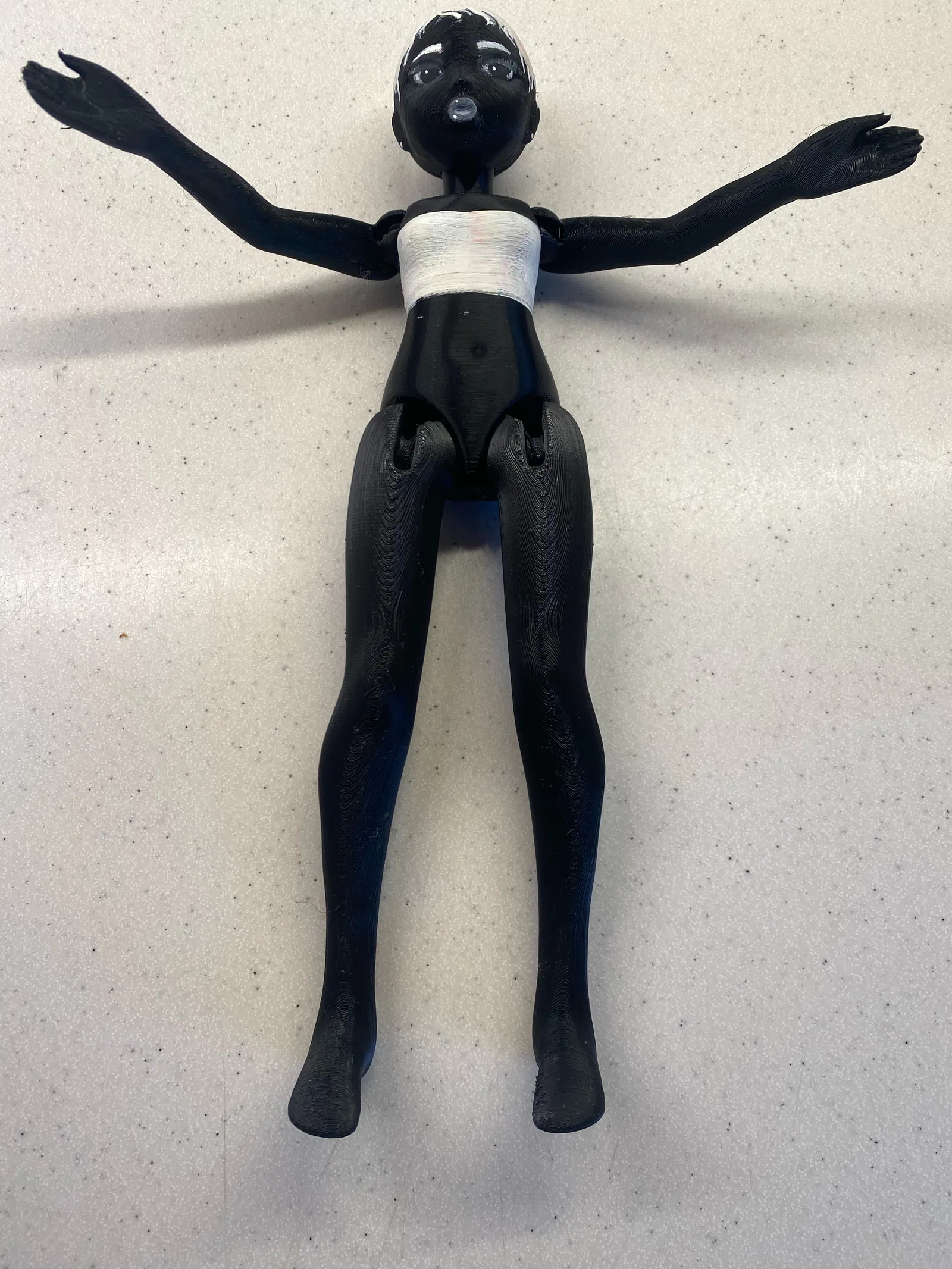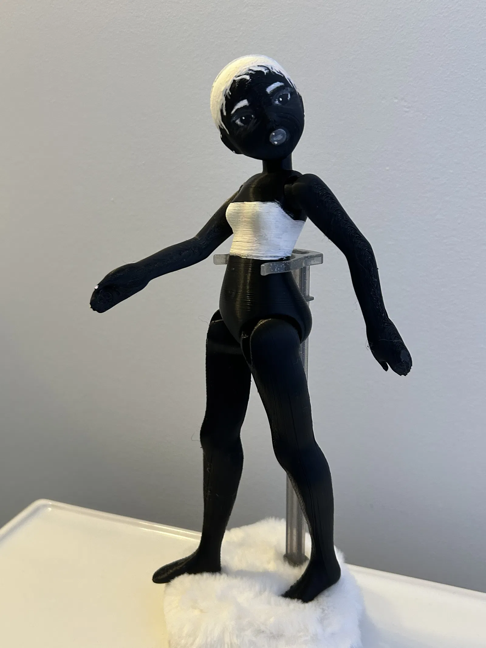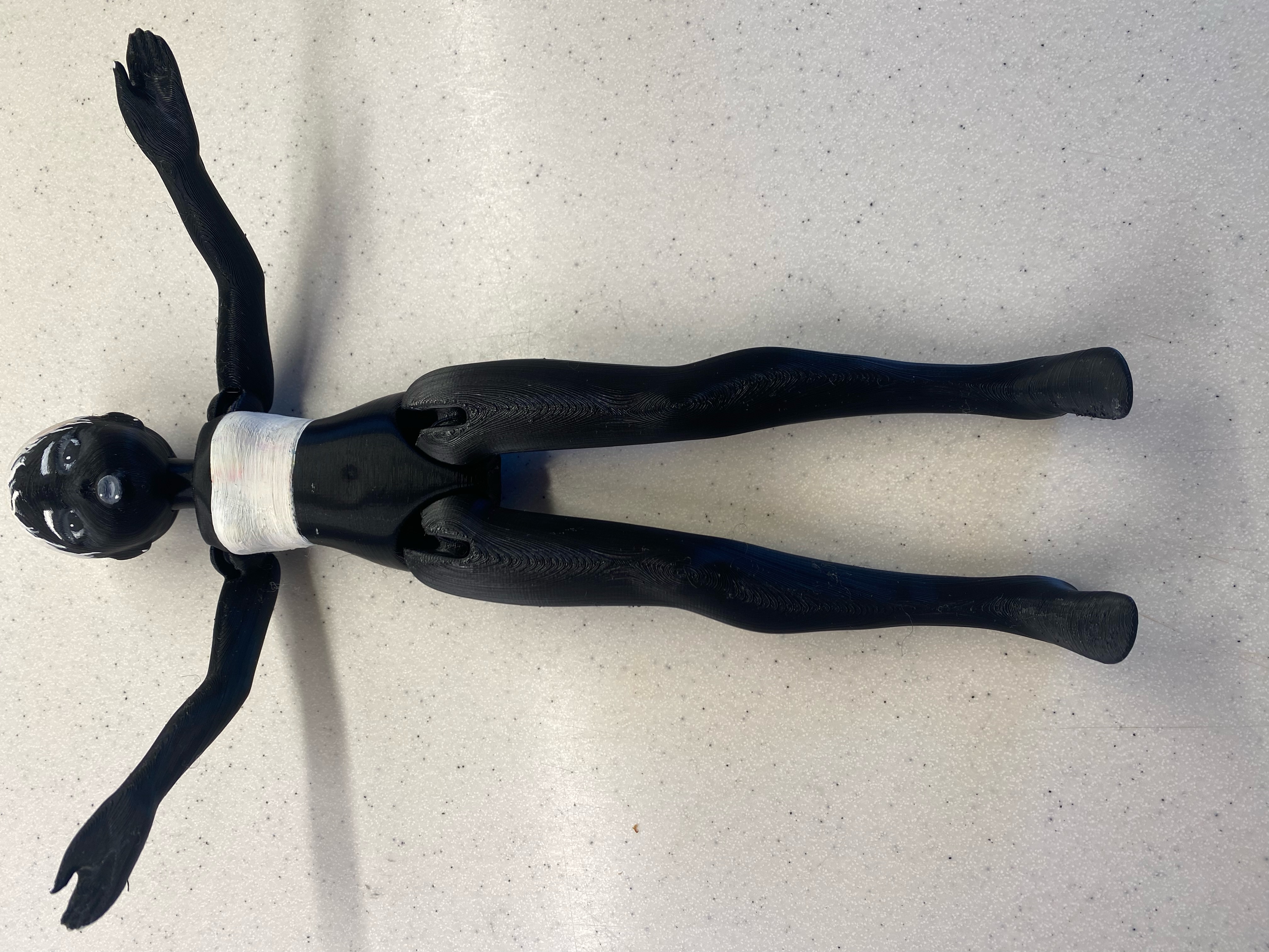 Búp bê khớp cầu với 5 khớp nối ở cổ, vai và hông, được xâu chuỗi bằng dây thun. Có thể thay đổi tay và chân. Người tạo trẻ tuổi đã làm ra búp bê này bằng kỹ năng điêu khắc 3D lần đầu tiên.