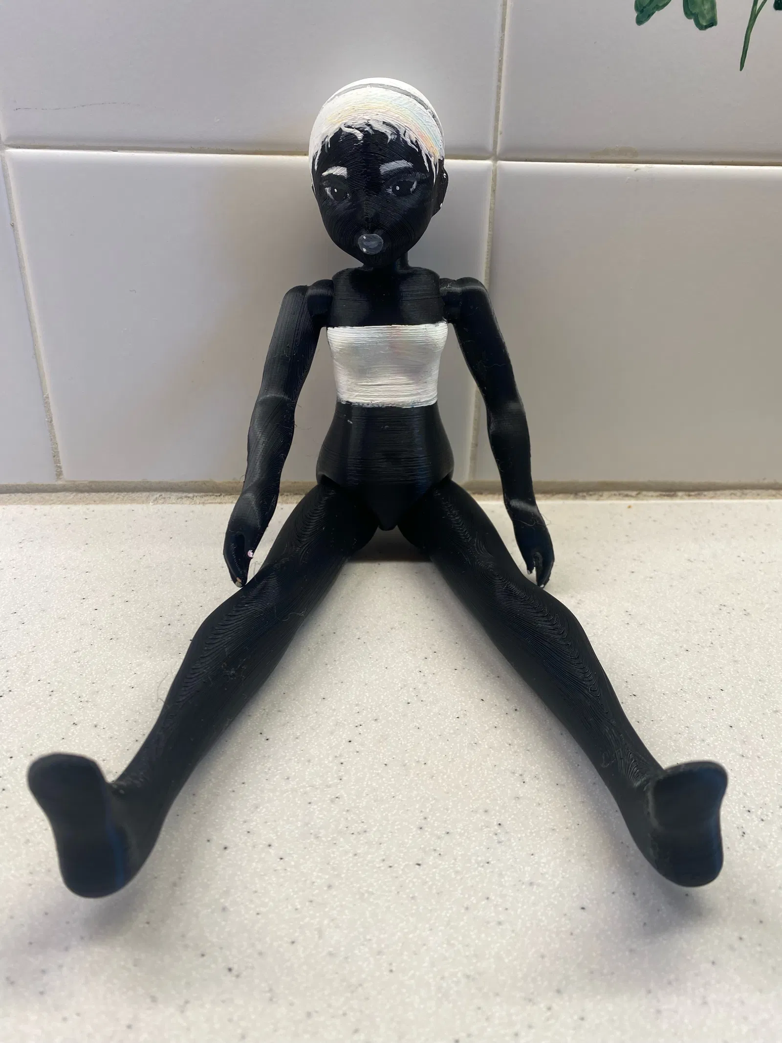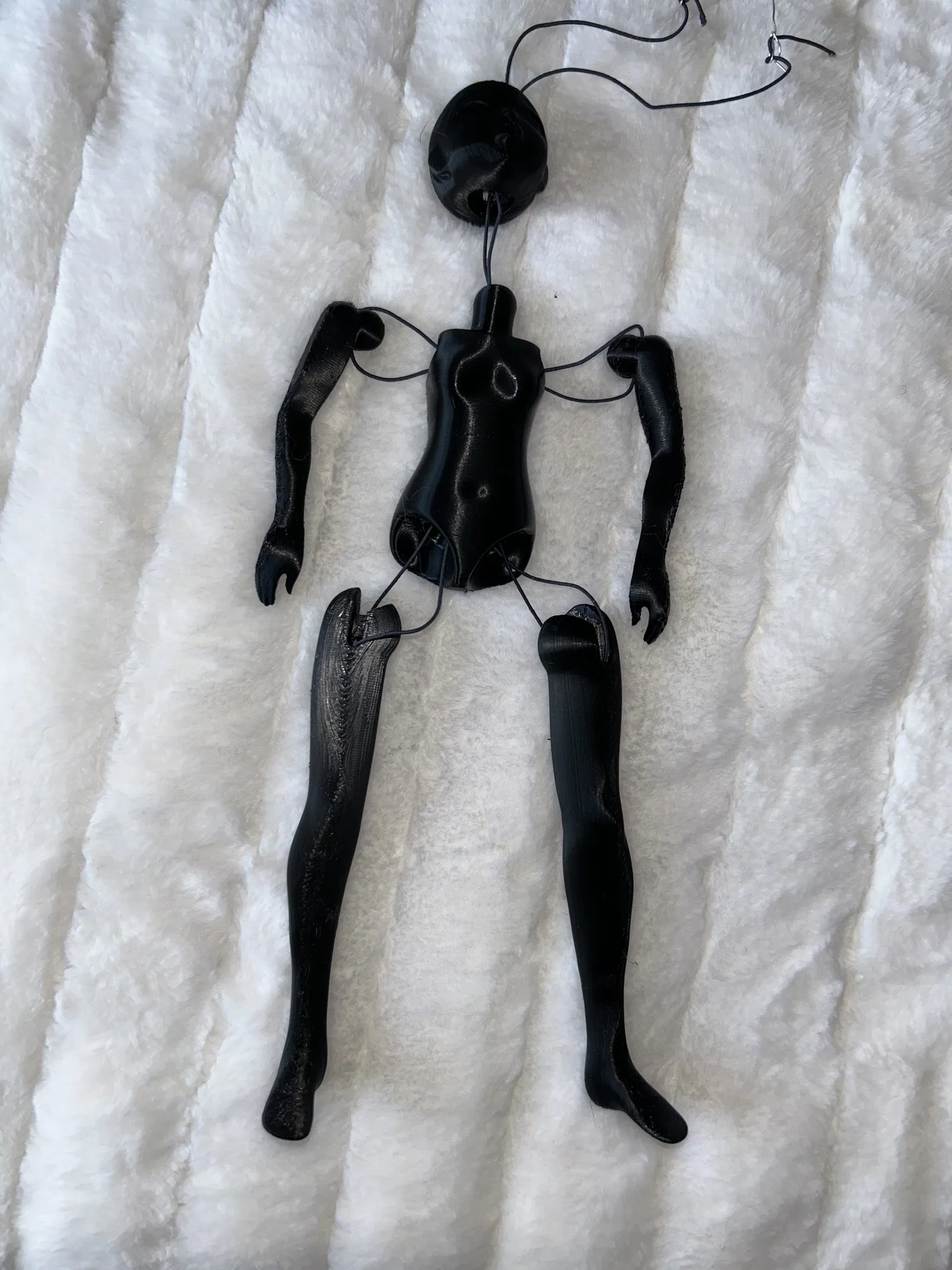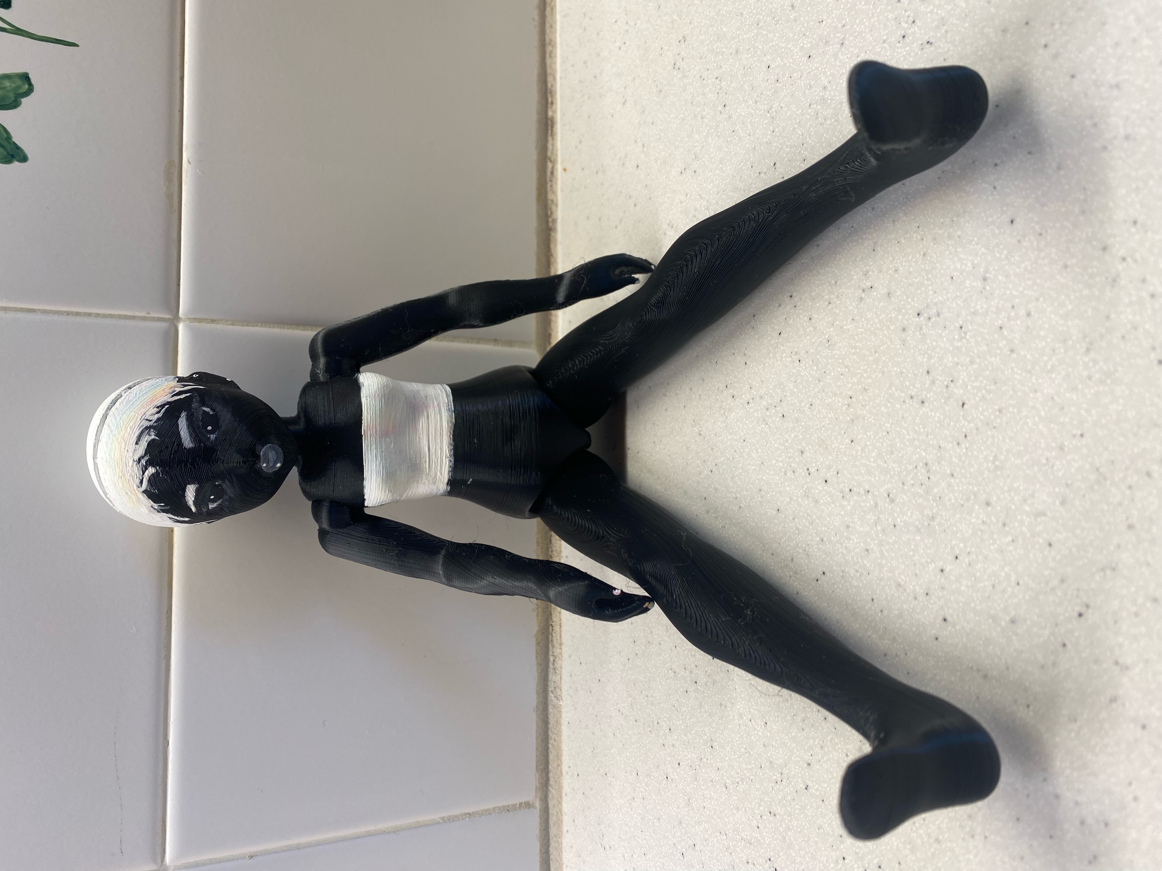 Búp bê khớp cầu với 5 khớp nối ở cổ, vai và hông, được xâu chuỗi bằng dây thun. Có thể thay đổi tay và chân. Người tạo trẻ tuổi đã làm ra búp bê này bằng kỹ năng điêu khắc 3D lần đầu tiên.