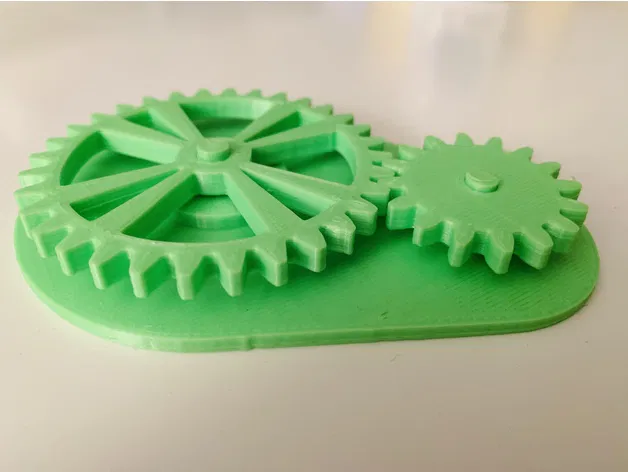 Bộ nhông truyền động đơn giản do tui tự ráp như bài học đầu tiên về nhông và nhiều khối trong một bản phác thảo. Có thể chọn cả bộ trong một file STL hoặc từng chi tiết riêng lẻ. Tui thì in riêng từng món mà chung 1 slice nên gom lại in 1 lượt. Cần chà nhám sơ lại mấy cái nan hoa chút đỉnh, mà tui nghĩ là do cái đế của tui hơi bị lệc á.