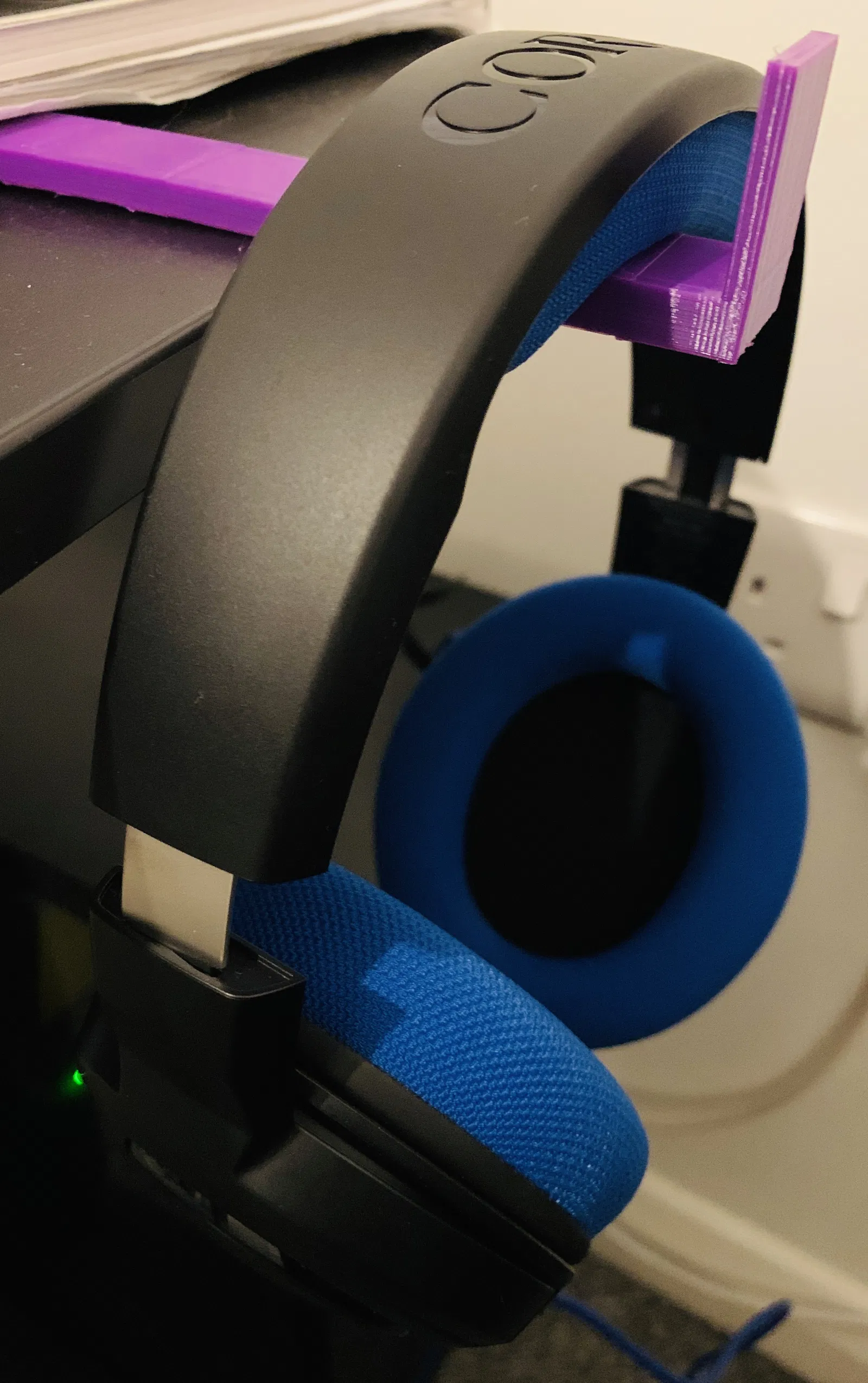 Chiếc kệ treo tai nghe đơn giản này giúp tận dụng không gian trên bàn làm việc, treo tai nghe gọn gàng ngay cạnh bàn.