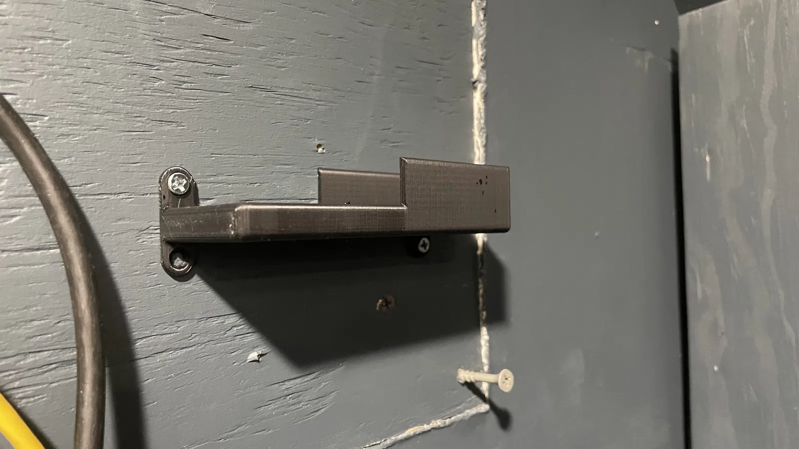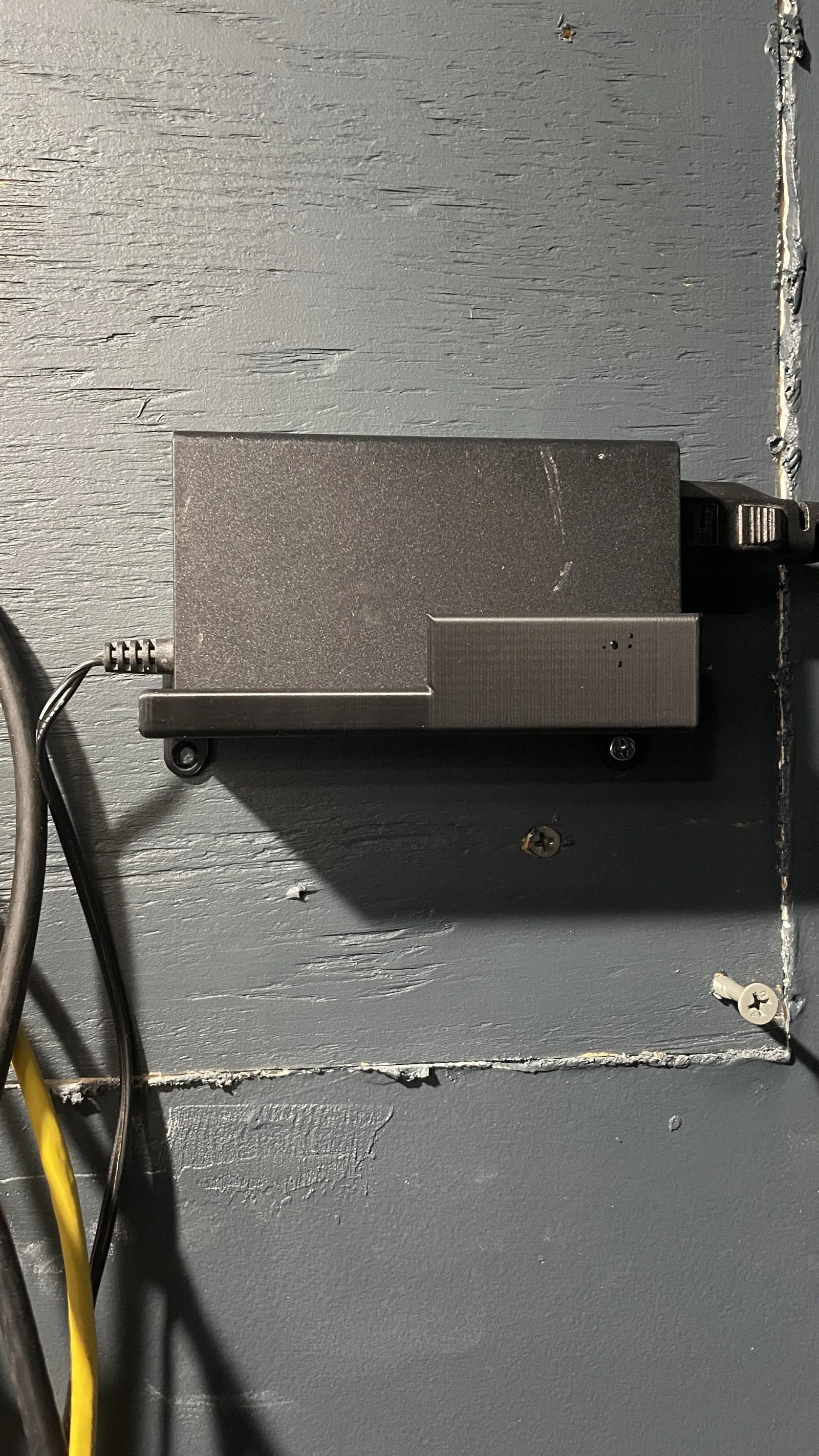 Giá đỡ cục sạc treo tường cho switch TP-Link. Kích thước xấp xỉ 40mm sâu x 110mm rộng. Có các lỗ khoét để chứa dây cáp và lỗ vít #5 ANSI countersunk. File .3mf, .step có sẵn để chỉnh sửa. In đứng với hỗ trợ.