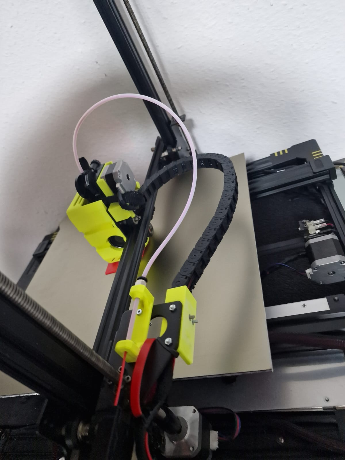 Chỉ cần nối dài dây cáp extruder, và cần một vài con ốc M3 dài hơn + đai ốc. Hiện tại tôi slice bằng Bambu-Slicer và không còn bị giật sợi (stringing) nữa, với Retract 0.8mm và 30mm/s cùng 2.8mm Wipe. Nhân tiện nói thêm là tôi đang chạy đầu phun 0.8mm trên Volcano Hotend.