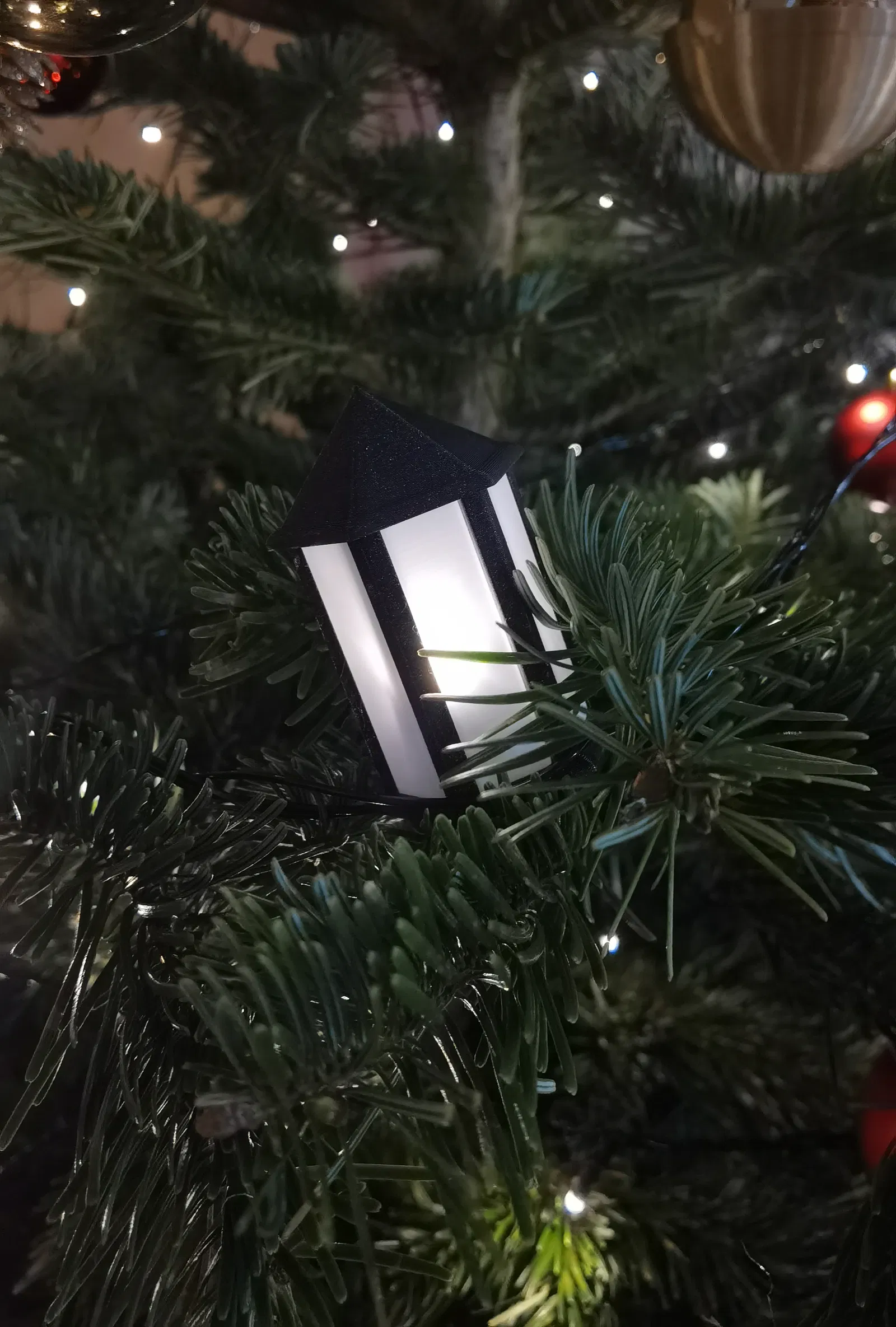 Những chiếc lồng đèn nhỏ xinh cho bộ đèn Giáng sinh của bạn. Ráp lại đơn giản, chỉ cần luồn đèn vào từ phía dưới là có ngay một vật trang trí lung linh. Phần "thủy tinh" in vase mode cho hiệu ứng đẹp mắt.