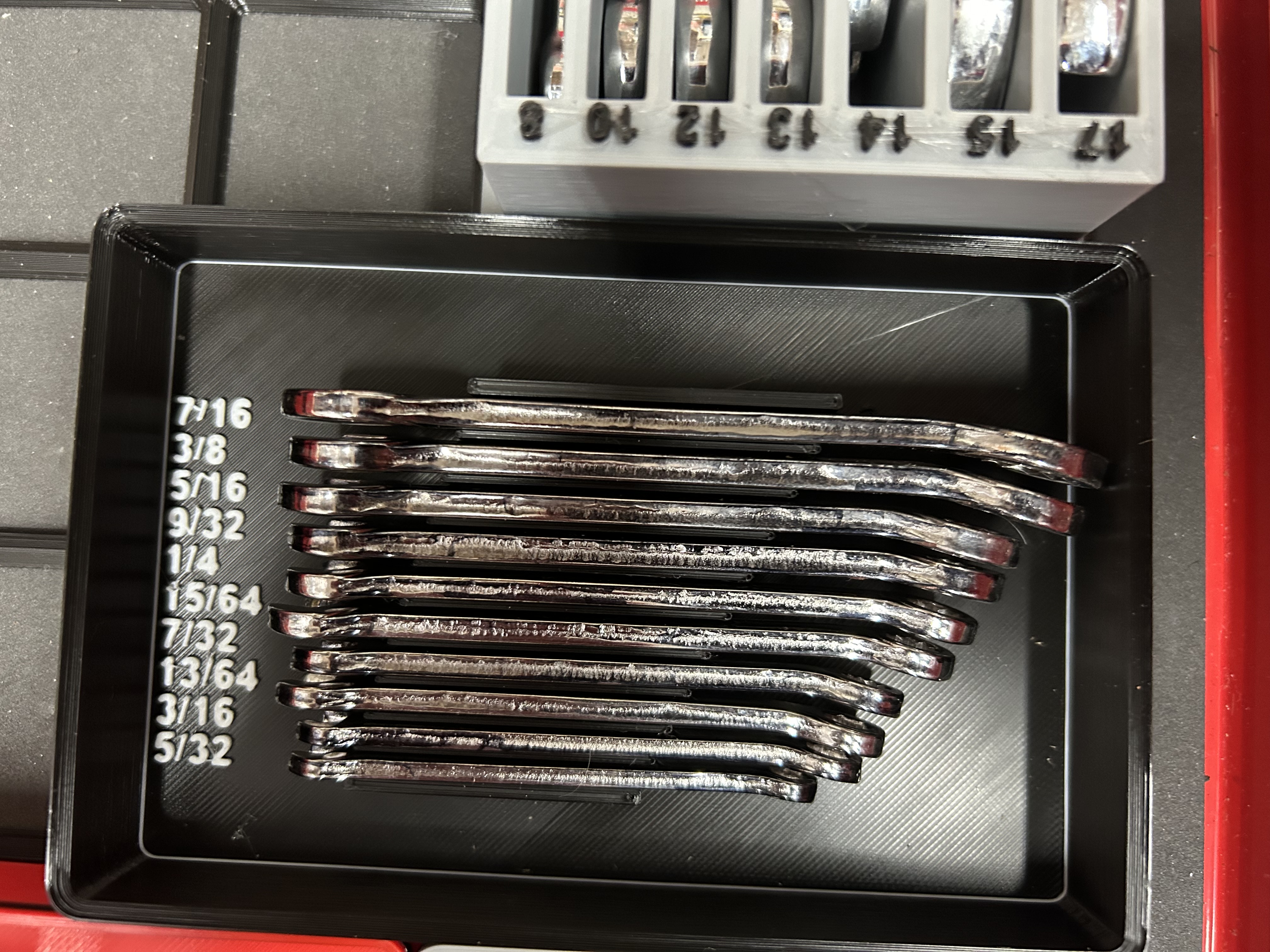 Kệ giữ cờ lê Midget SAE/Metric cho cờ lê Midget Craftsman. Đã thêm đế và hộp Gridfinity để giữ chúng gọn gàng.