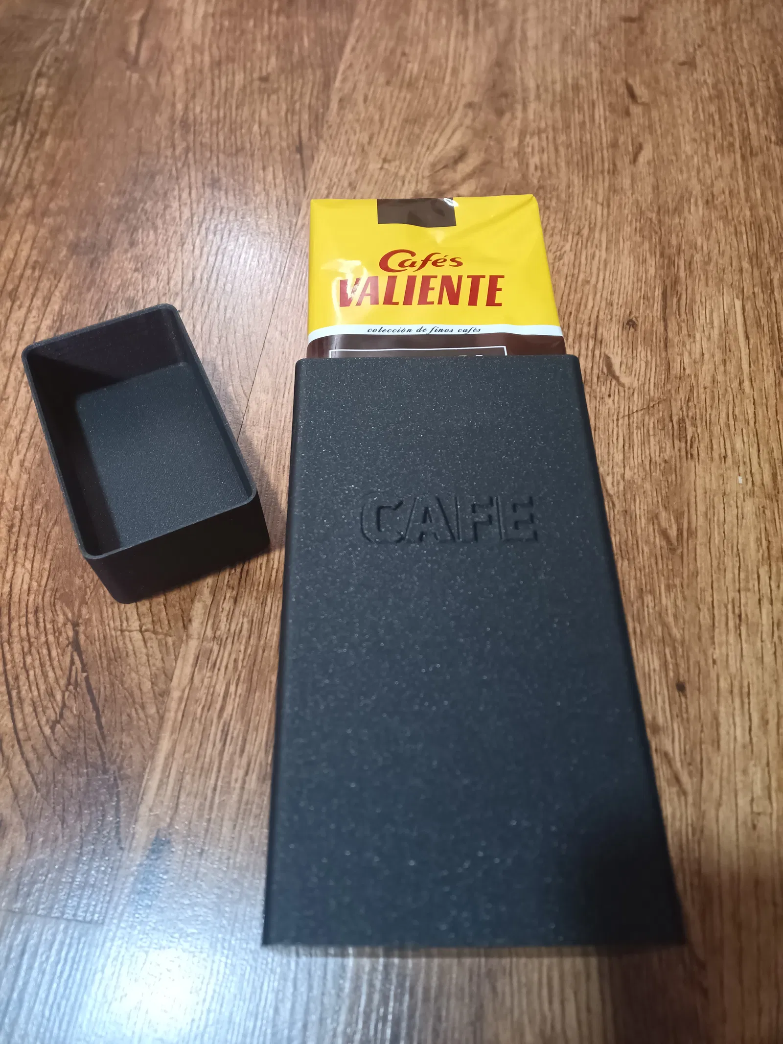 Hộp được làm theo kích thước của loại cà phê bạn hay bán trong siêu thị. Nó có thể đứng in bình thường; Bạn cần lật nắp lại để in úp xuống. Không cần bất kỳ vật liệu hỗ trợ nào. Với dung sai tối thiểu giữa hộp và nắp (0,1), để nó đóng chặt, không bị ép. Tôi để lại cho bạn tệp Fusion, phòng trường hợp bạn muốn thay đổi điều gì đó hoặc điều chỉnh theo các kích thước khác.