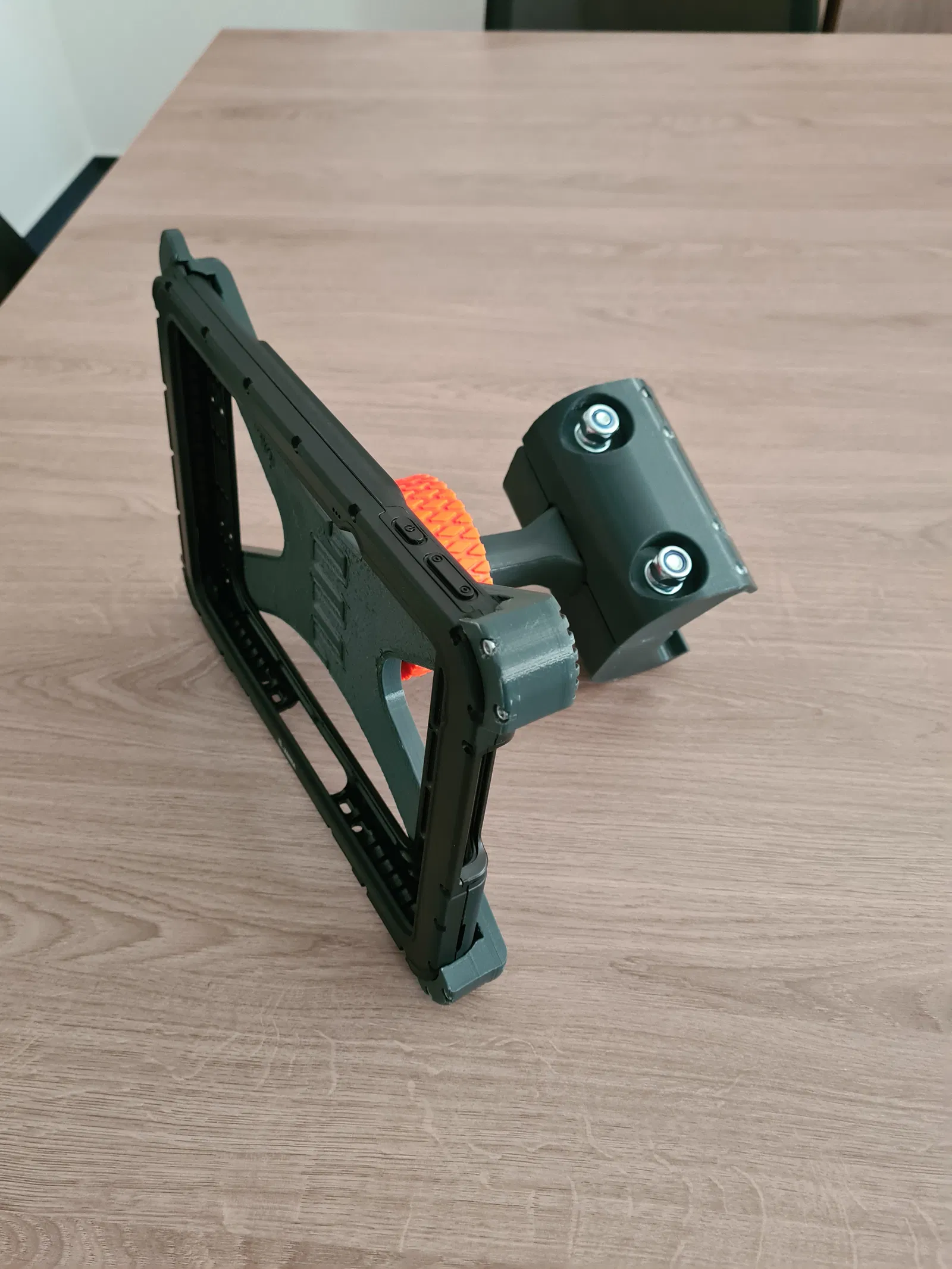 Tui cung cấp giá đỡ máy tính bảng chuyên dụng cho dòng máy Zebra, loại tui đang làm là cho xe nâng trong môi trường công nghiệp (Zebra SG-ET5X-10RCSE4-01). Tui có thể tùy chỉnh giá đỡ cho bất kỳ loại máy tính bảng hay xe nào dựa trên thông tin bạn cung cấp (kích thước, hình ảnh, hay bất cứ thứ gì).