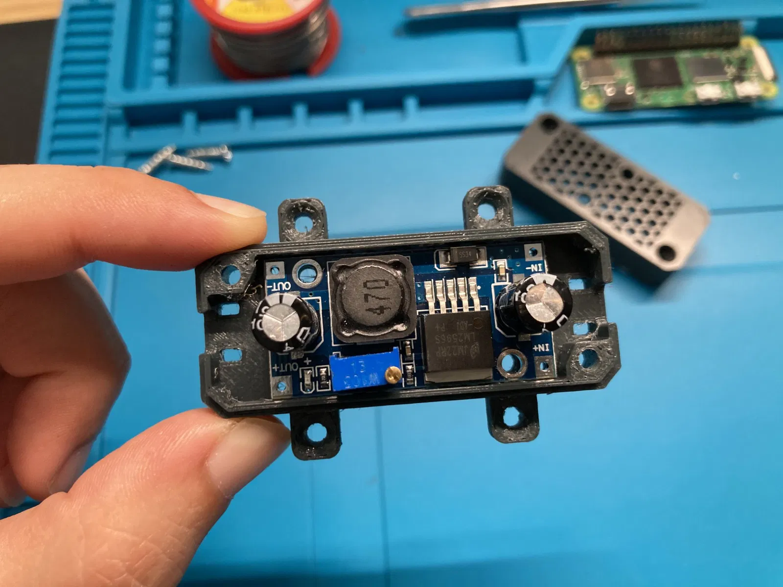 Tôi thực sự thích @blackboots2_227840 thiết kế vỏ LM2596, nhưng nó không hoàn toàn phù hợp với phiên bản của các bộ chuyển đổi LM2596 mà tôi có trong tay, cụ thể là, bảng mạch và ốc vỏ không được căn chỉnh (có khoảng chênh lệch khoảng 1mm) và vỏ trên không đủ cao để đóng lại do sự khác biệt về chiều cao của các linh kiện. Tôi cũng muốn gắn/ốc vỏ vào bàn Lack, vì vậy tôi cần một chỗ để chèn “chân” cho ốc vít. Phiên bản không có chân cũng có sẵn. Tôi đã in cái của mình bằng PETG vì tôi không chắc nó sẽ phải chịu nhiệt độ bao nhiêu, nhưng ASA có lẽ là lựa chọn tốt hơn, nếu bạn có. Danh sách các bộ phận: - 2x ốc M3 18mm